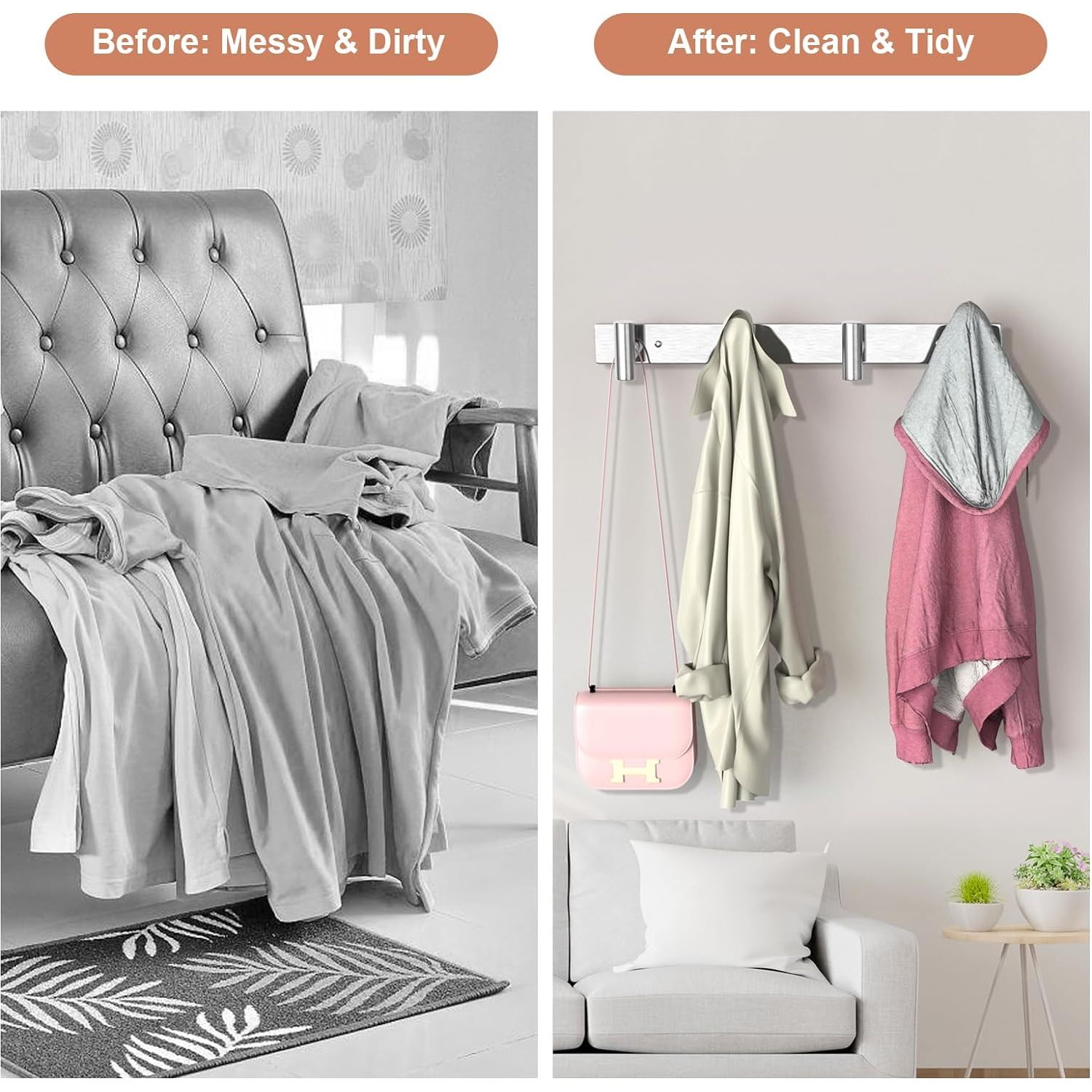• Durable and sturdy: The PMMASTO Coat Rack Wall Mounted is made of stainless steel to ensure quality and service life