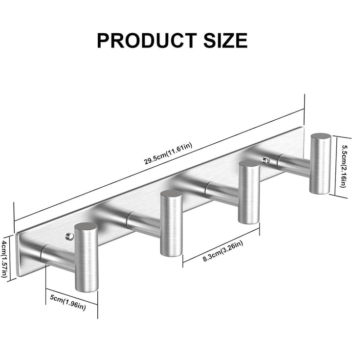 PMMASTO Coat Rack Wall Mount with Coat Hooks, 4 "T Shaped Wall Hooks for Hanging Hat Towel Robes, Heavy Duty Stainless Steel Coat Hanger in Bathroom Kitchen Entryway (Silver 4Hooks, 1PC) - Just Closeouts Canada Inc.