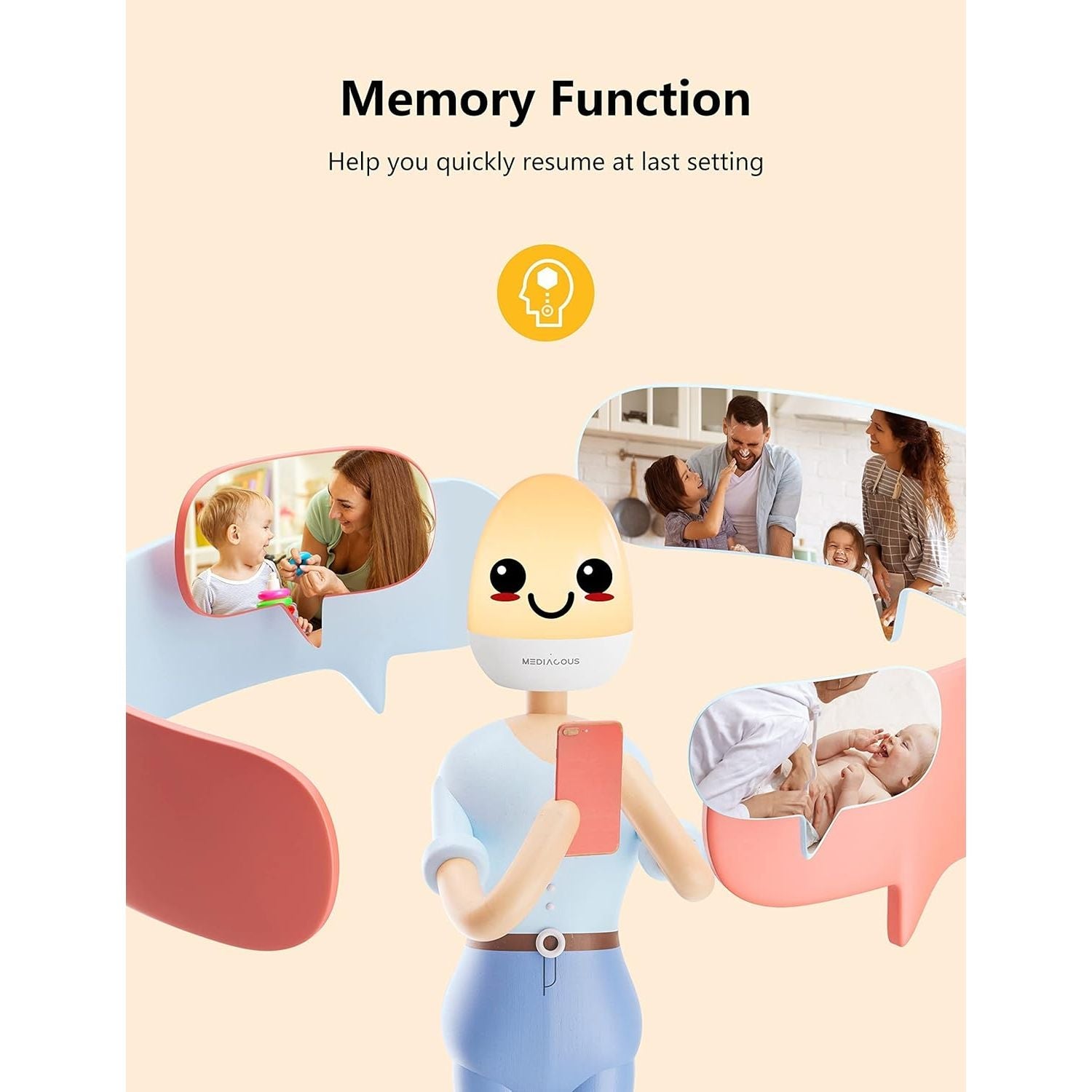 Night Lights for Kids, MediAcous Baby Night Light with Stable Charging Pad, Dimmable Kids Night Light with 1H Timer & Touch Control, ABS+PC LED Egg Lamps for Breastfeeding, Up to 200H - Just Closeouts Canada Inc.