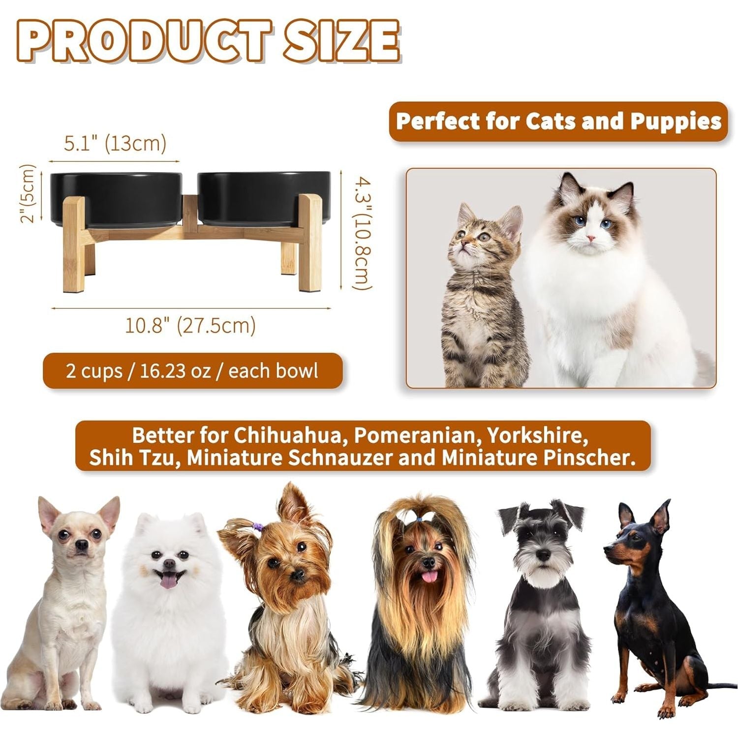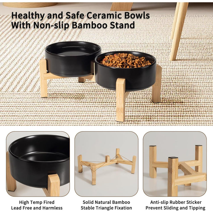 - Anti-Slip and Anti-Tipping: Each leg of the bamboo stand is equipped with rubber pad stickers to prevent the bowls from sliding when pets eat. And the thick ceramic dog dish bowl is heavy enough and stable enough, not easy to pushed down by naughty pets.