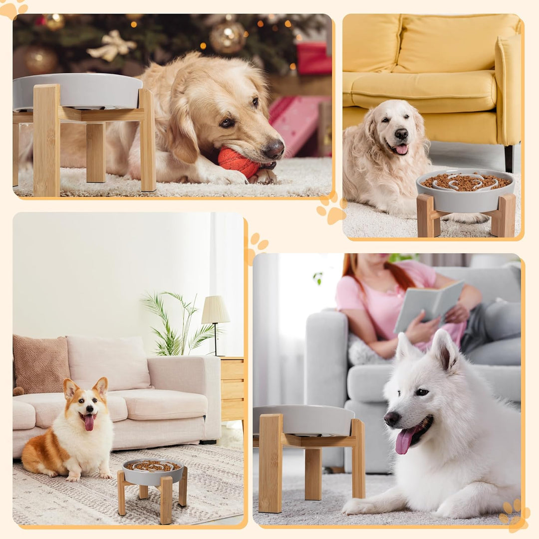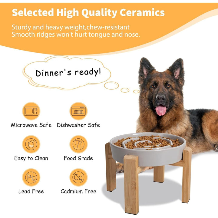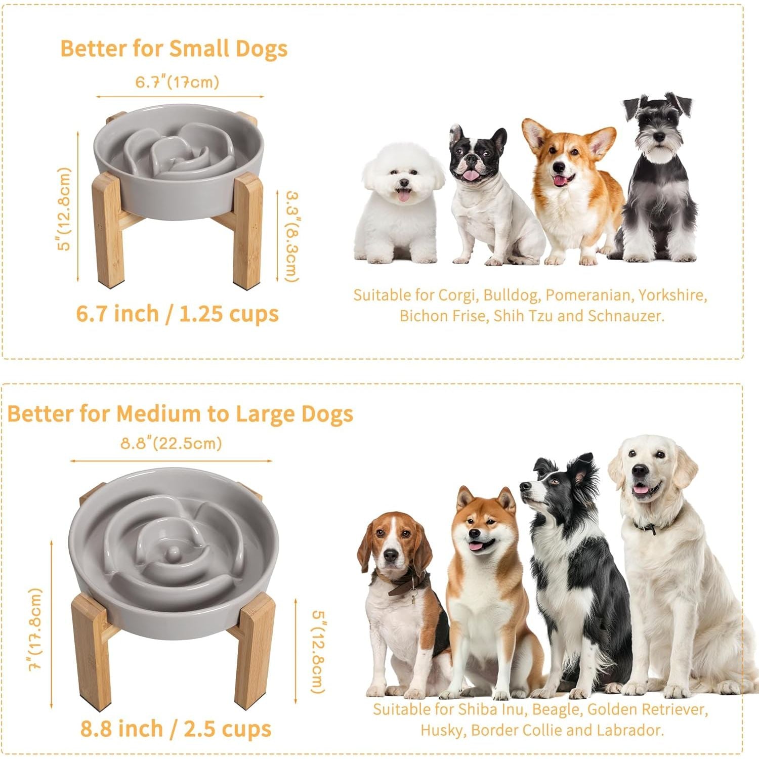• Selected High Quality Material - Each slow dog feeder bowl is made of premium food grade ceramics, lead free and cadmium free, non-toxic and harmless, strong and anti-bite. And the dog bowl stand is made of natural bamboo, safe and eco-friendly, sturdy and durable.
