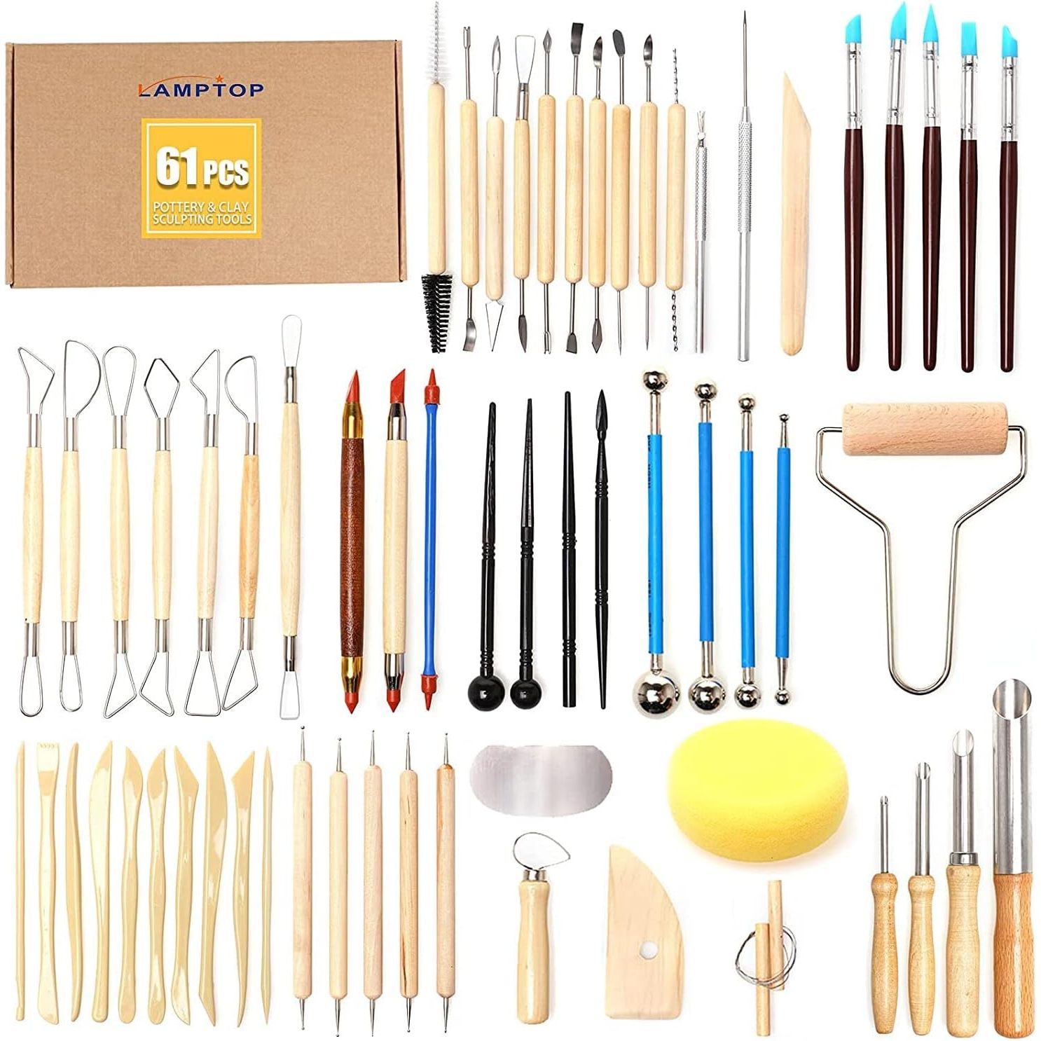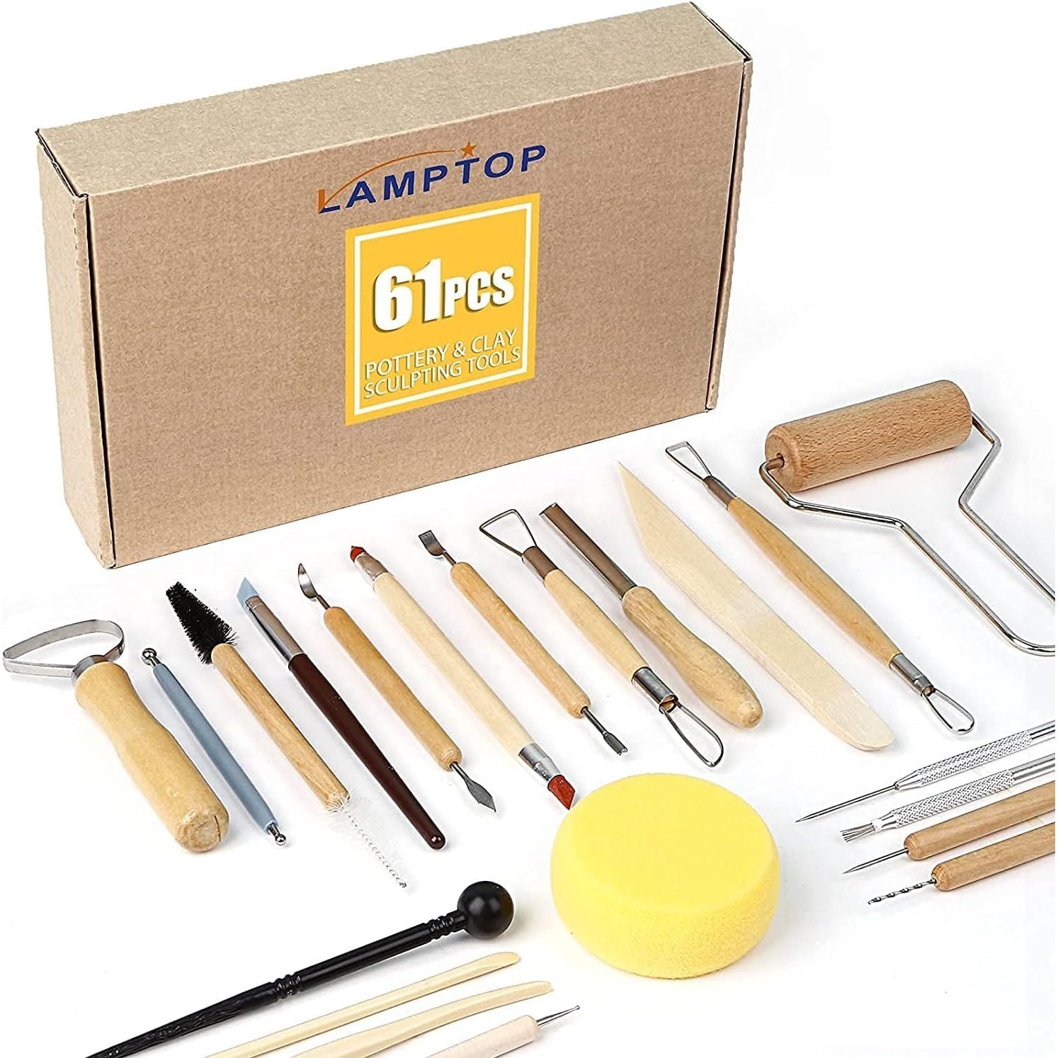 61 Piece Ceramic Clay Tools Set, LAMPTOP Polymer Clay Tools Pottery Tools Set, Wooden Pottery Sculpting Clay Cleaning Tool Set for Potters Beginners Professionals Arts Crafts - Just Closeouts Canada Inc.