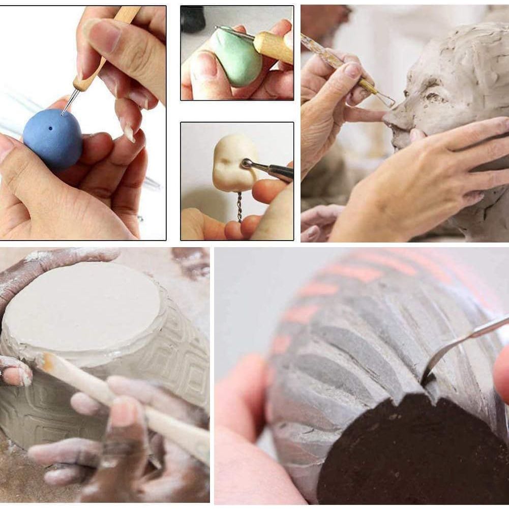 • Creative: Dual-Ended Design, Can handle any detail sculpting. These durable and finely crafted professional sculpting tools are easy to work with and clean. The wooden handles are smooth and comfortable yet ensuring a firm and secure grasp. The corrosion resistant metal of pottery tools are solid and bent but don’t break when pressure is applied.