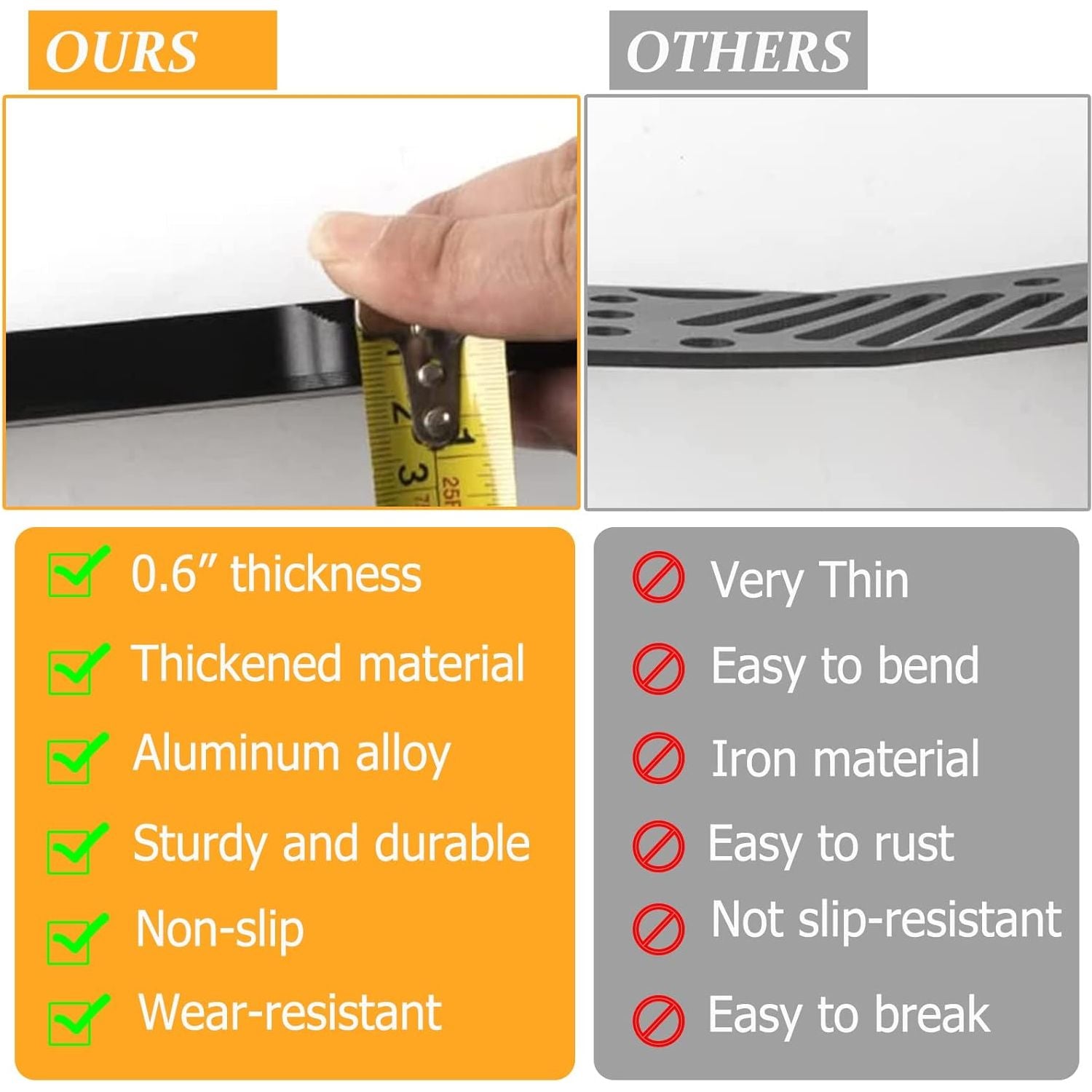 - 【Built to Last:】Made from solid Aluminum Alloy with a textured powder-coated finish for durability and aesthetics. 0.6in thickness, heavy duty, Anti-corrosion, anti-rust.
