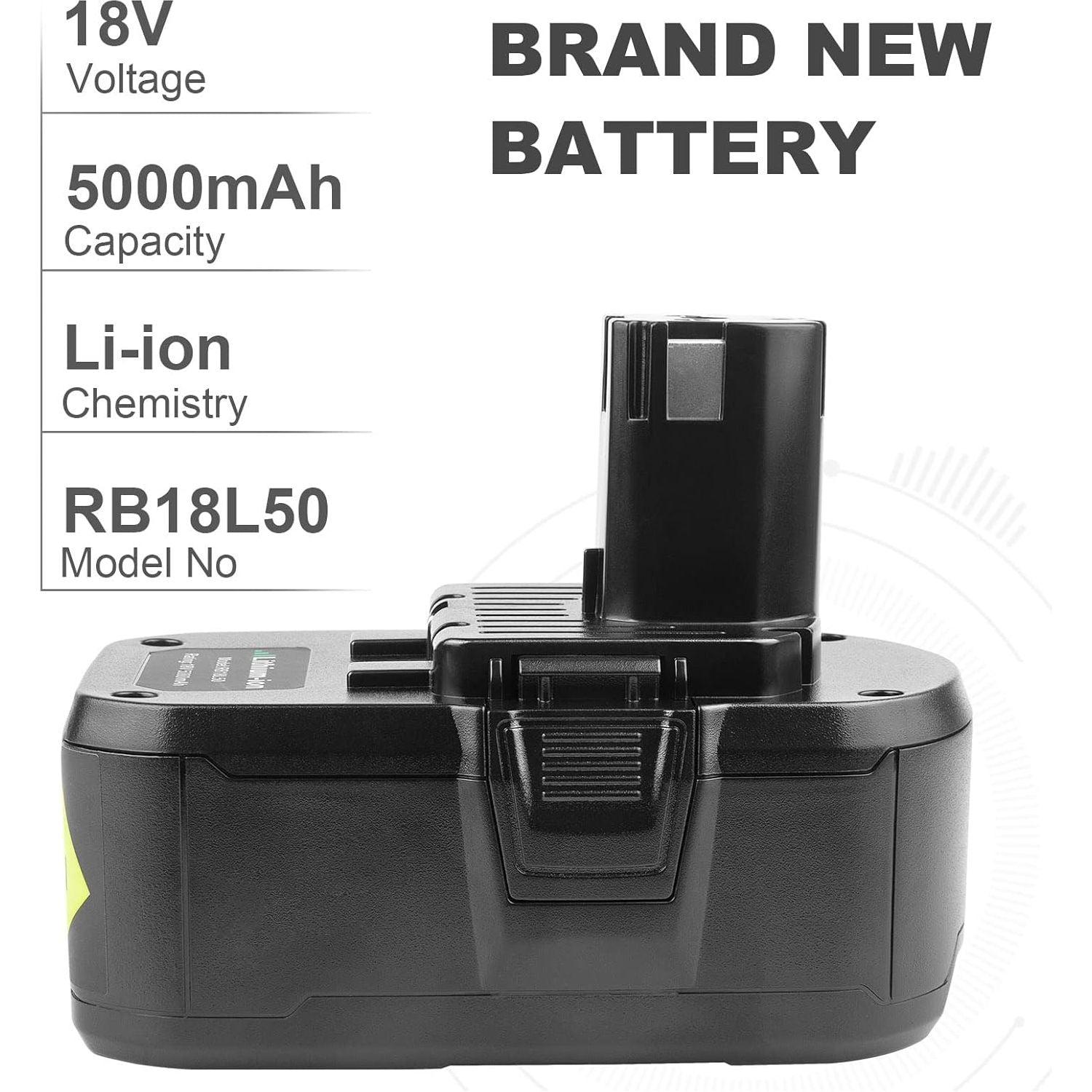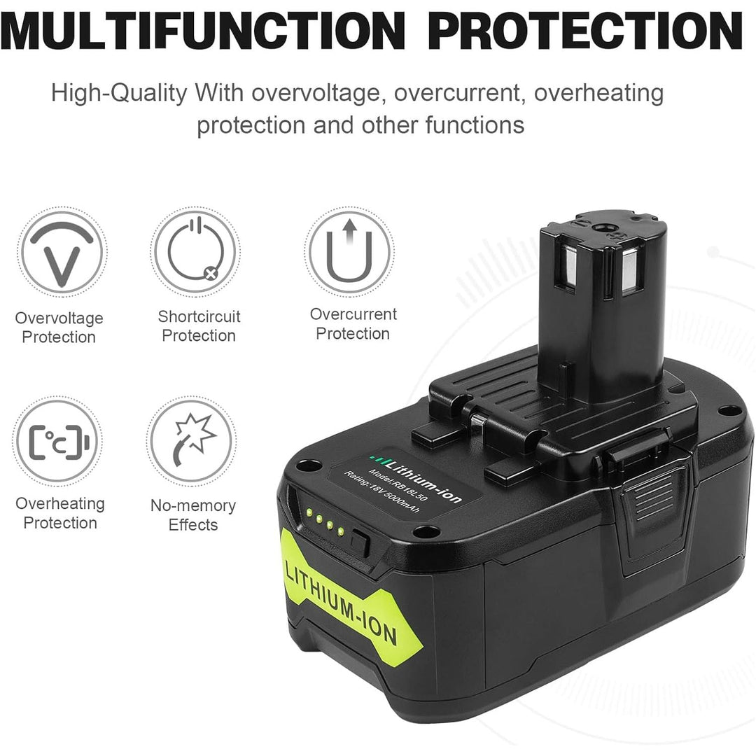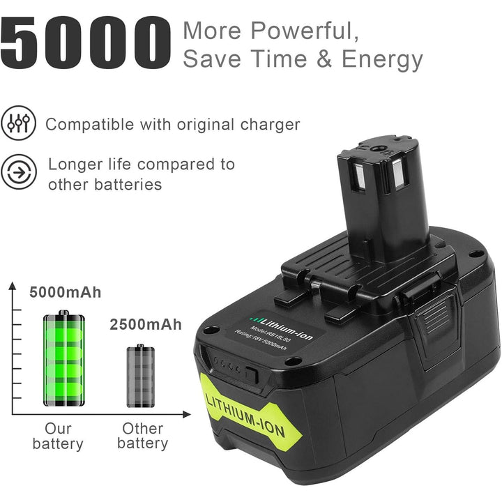 - Battery Specifications - Battery Type: Li-ion || Capacity: 5000mAh(5.0Ah) || Voltage: 18Volt. Made of high-quality A grade-quality premium cells. Bring a new life to your cordless tools