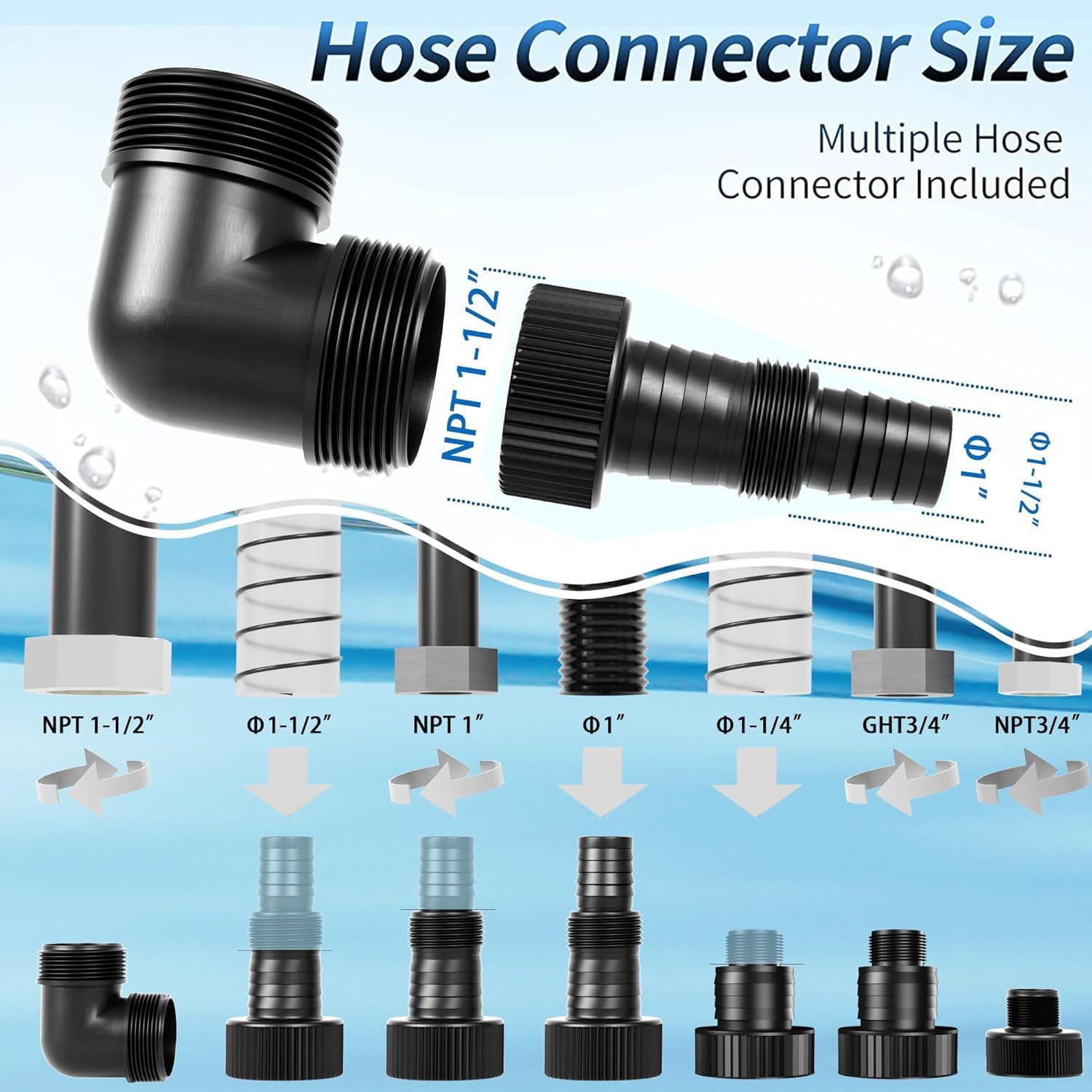 - 【3 Practical Adapters】Drain pump comes with a high capacity pumping 1-1/2" NPT discharge size, a 3/4" garden hose adapter and a hose adapter fits 36mm, 26mm or 1 inch hose. You can use different sizes of hoses depending on the flow.