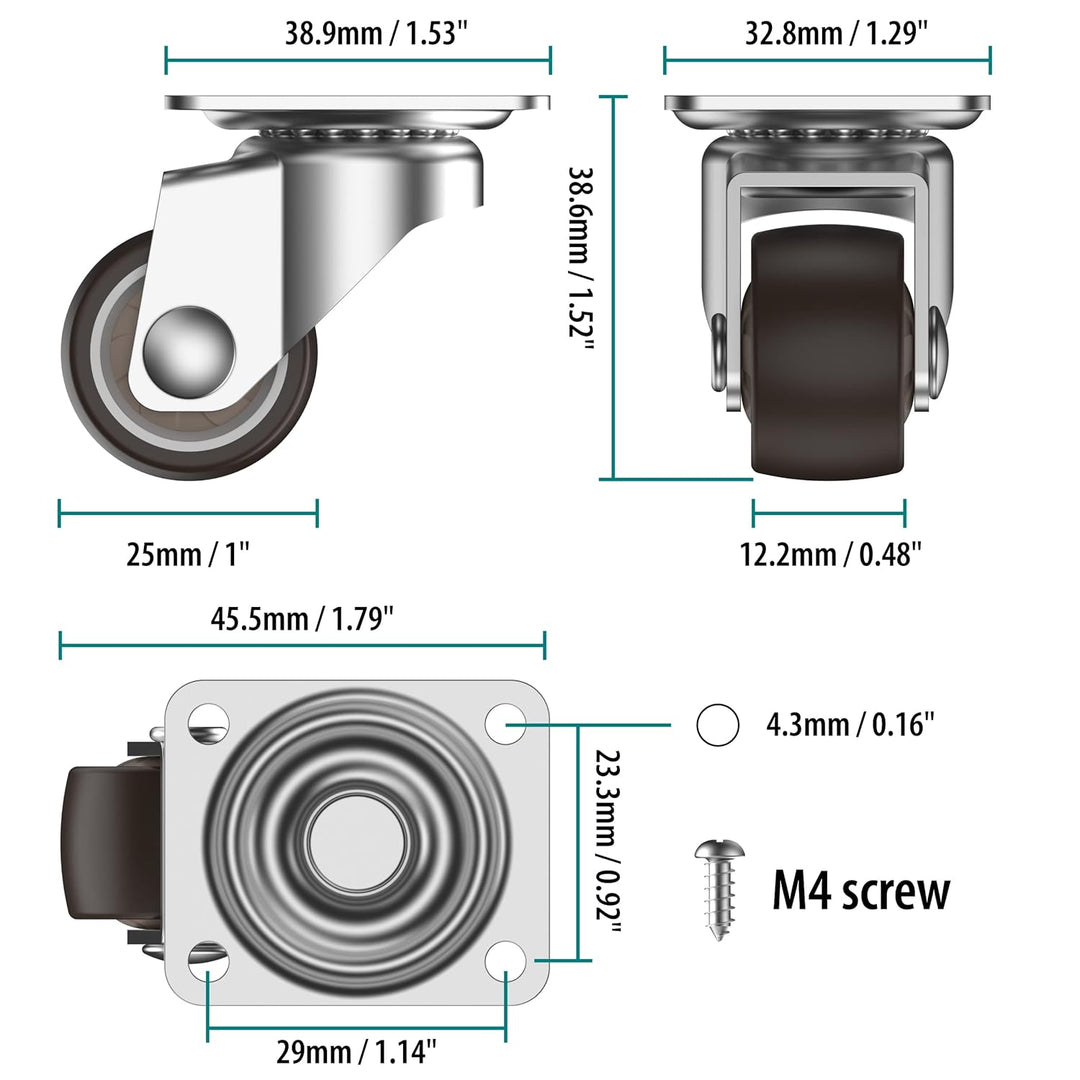 • MULTIPLE USE: The 1 inch caster wheels are 90lbs load capacity, perfect castor wheels for furniture and other small space moving furniture including ottoman, coffee table, plant stands, bookshelves, side table, underbed storage etc.