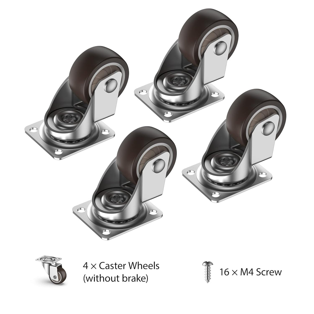 HOLKIE 1 inch Small Caster Wheels for Furniture Low Profile Casters Set of 4 Total Capacity 90 Lbs Perfect Wheels for Small Project、Nightstand、Side Table (No Brake) - Just Closeouts Canada Inc.