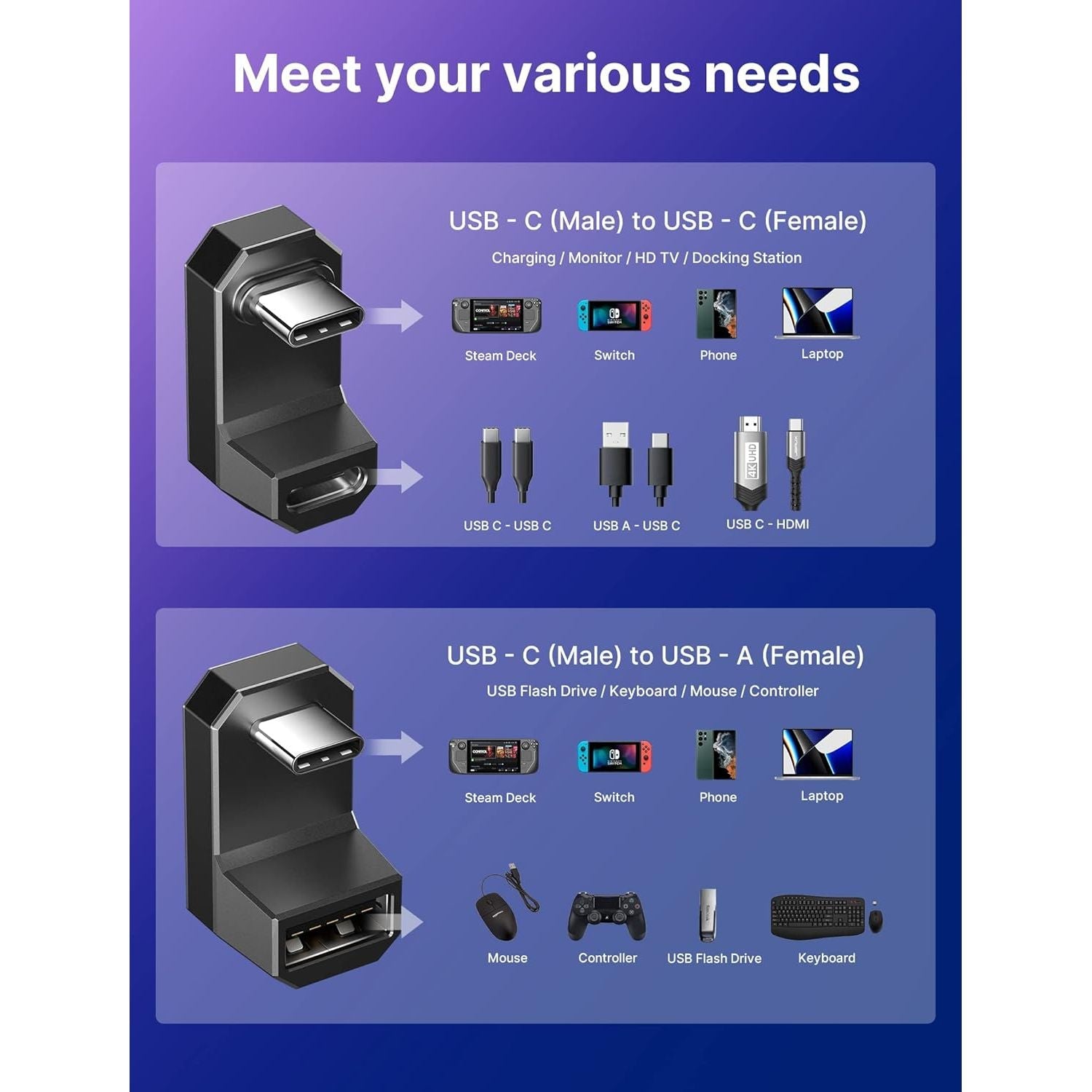 - 【Compatibility】Widely work with most Type C devices. For ROG Ally, Steam Deck, Switch, MacBook Pro, Surface Book 2, Samsung Galaxy S22/S21/S20/S10, Note 20/10, LG G7/V20,Google Pixel, ChromeBook, etc.