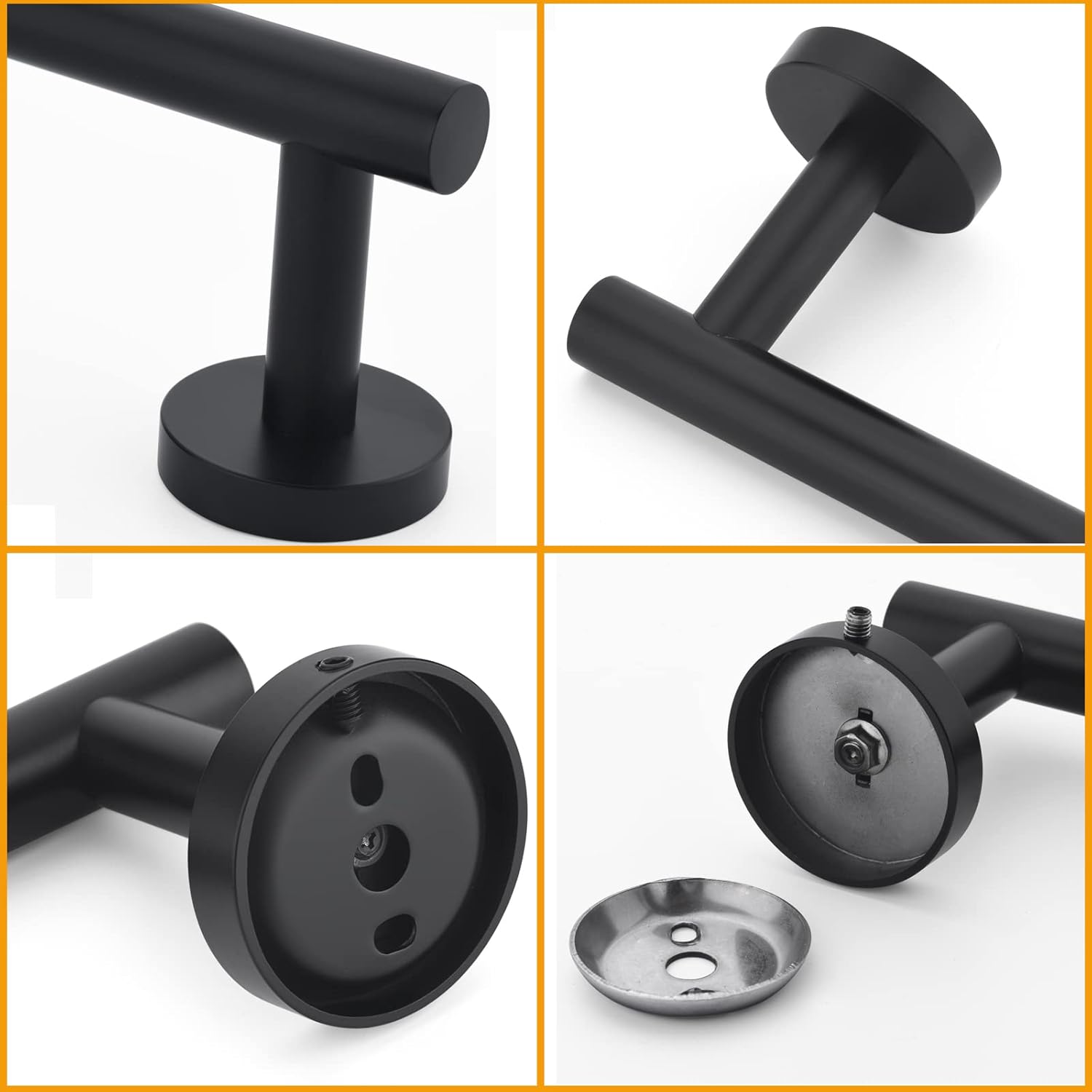 - [BEAUTIFUL APPEARANCE]: Modern Round design, Towel holder with Round base and double bolt installation make more stable, the mounting screws are hidden and out of sight.