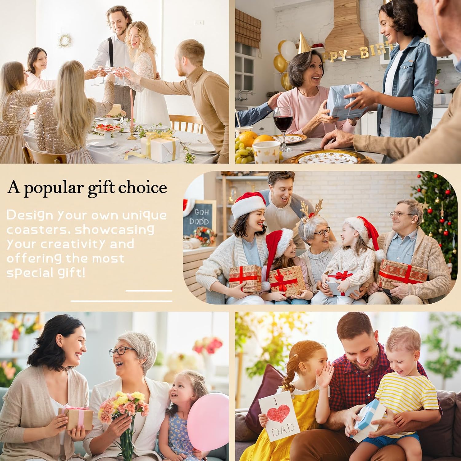 • A POPULAR GIFT CHOICE: Design your own unique coasters, showcasing your creativity and offering the most special gift! Customize one-of-a-kind coasters for friends, family, or colleagues, and they will be delighted by the thoughtful surprise! Each coaster carries your personal touch and creativity, making it a perfect gift that combines functionality and elegance.