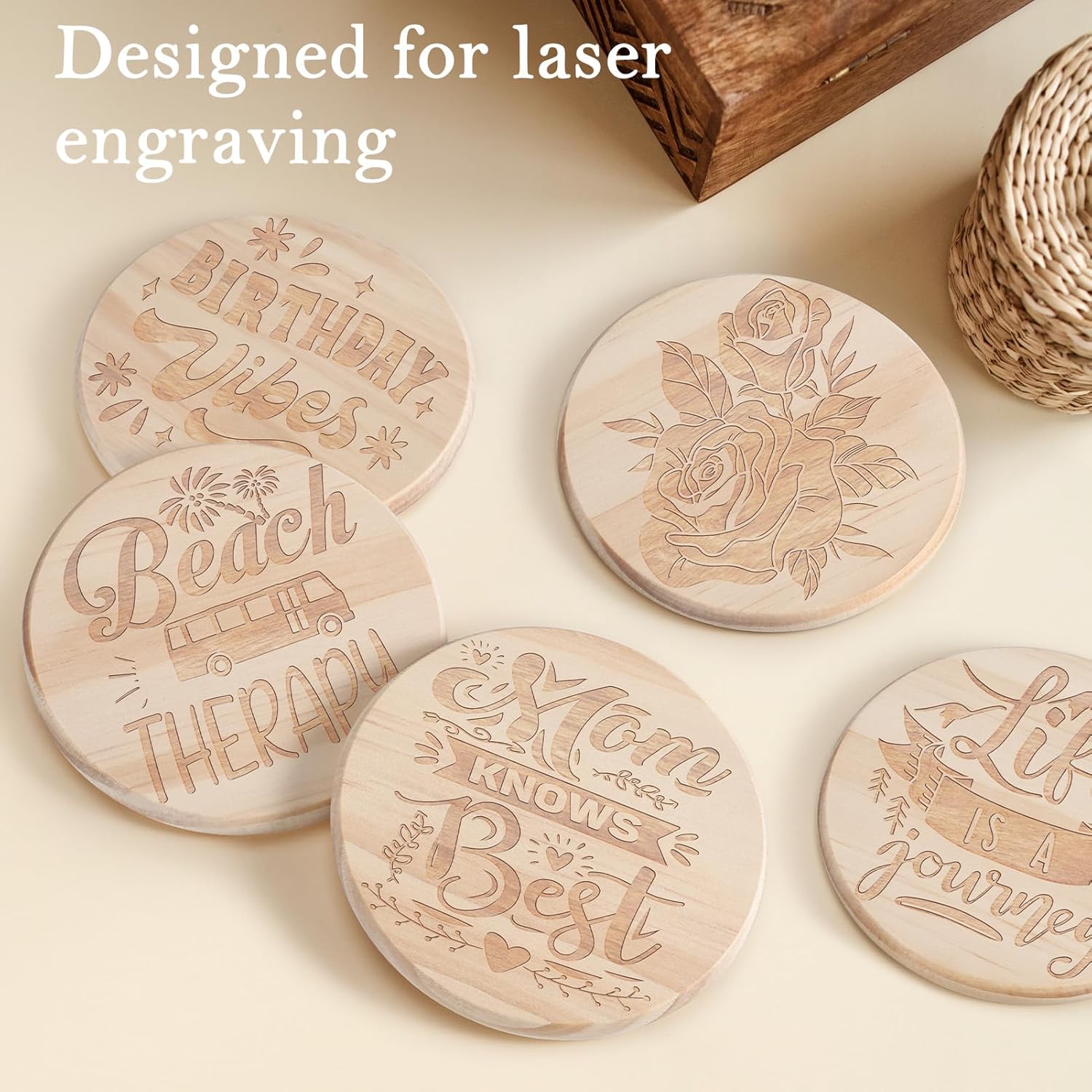 • DESIGNED FOR LASER ENGRAVING: Unleash your creativity and craft personalized coasters! With laser engraving technology, you can effortlessly etch your own designs, text, or logos onto pine coasters. The simple process allows you to achieve personalized customization in no time, creating unique and meaningful coasters.