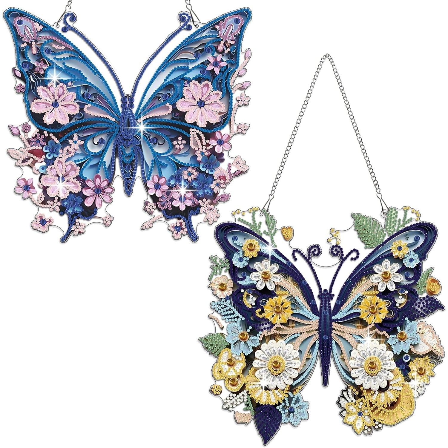 - Product includes--Hanging ornament x 2PCS, chain x 2PCS, tool kit (colorful diamond bag, clay glue, pen and diamond tray) x 2PCS. One side needs diamonds. The back is HD-printed. There will be 20% more diamonds of each color.