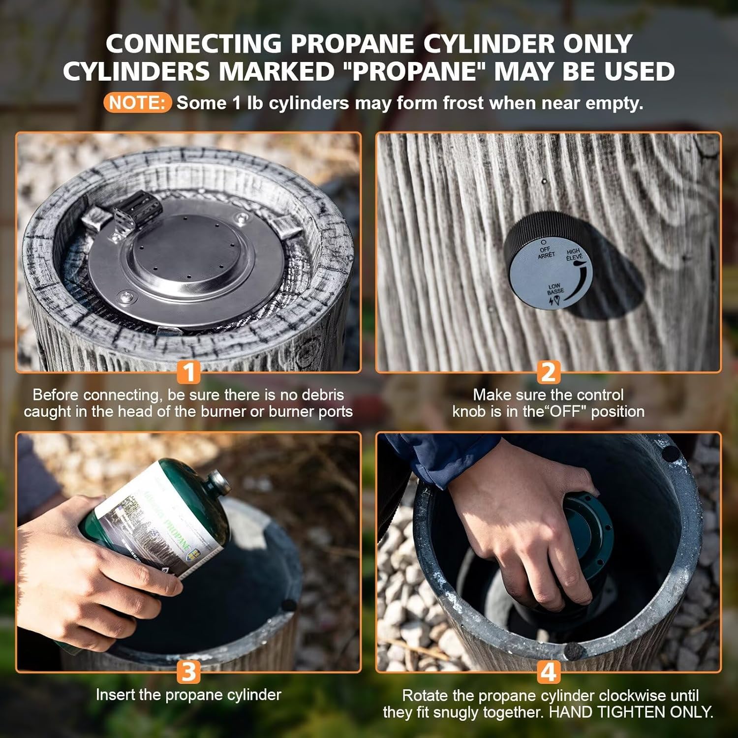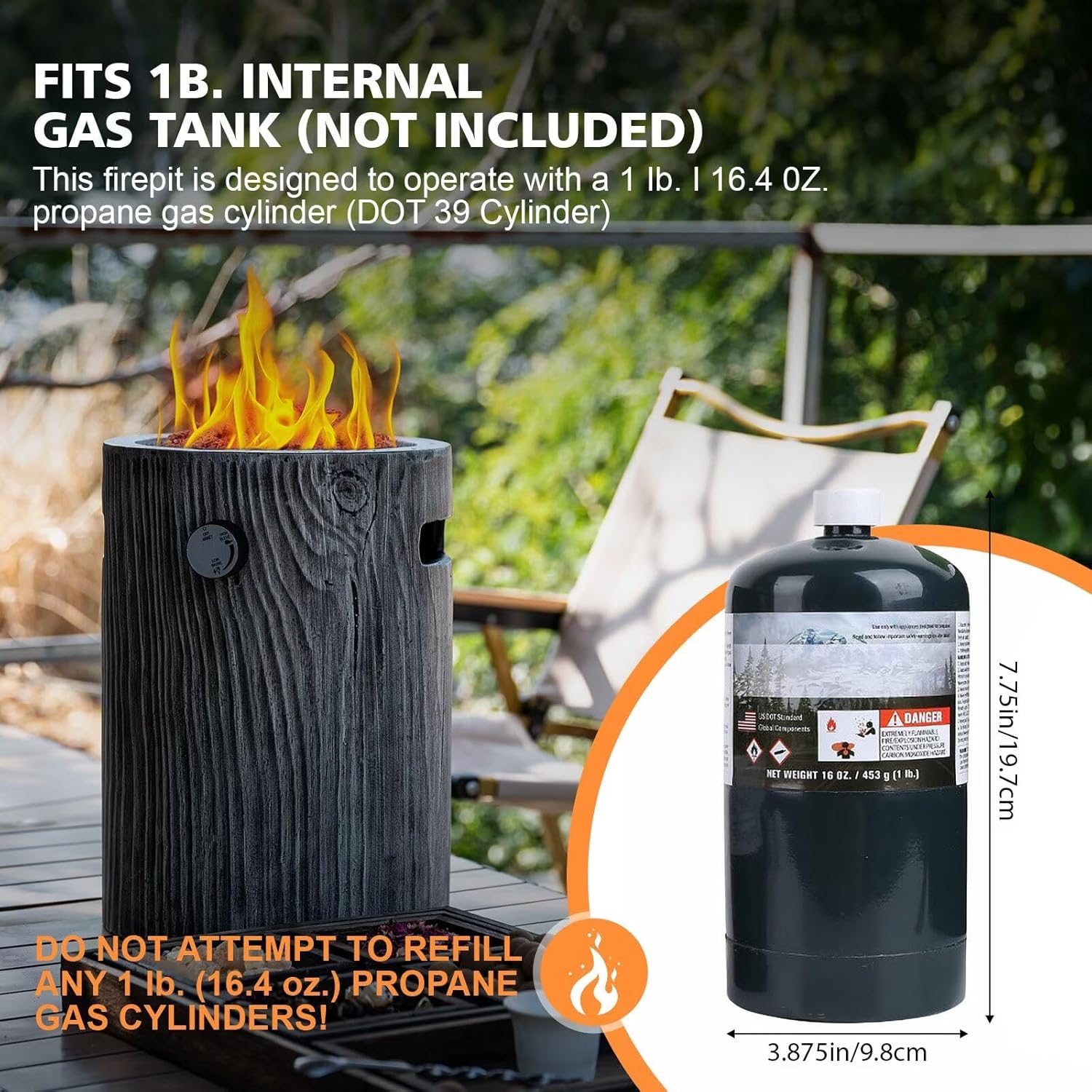 • Perfectly Sized for Ultimate Convenience: Designed for ease and portability, this propane fire pit is compatible with a 1 lb. internal gas tank (not included) and operates smoothly with a 16.4 oz. propane cylinder (DOT 39 Cylinder). Compact and easy to use, it’s ideal for creating cozy, intimate fireside experiences wherever you go, whether at home or on your next adventure under the stars.