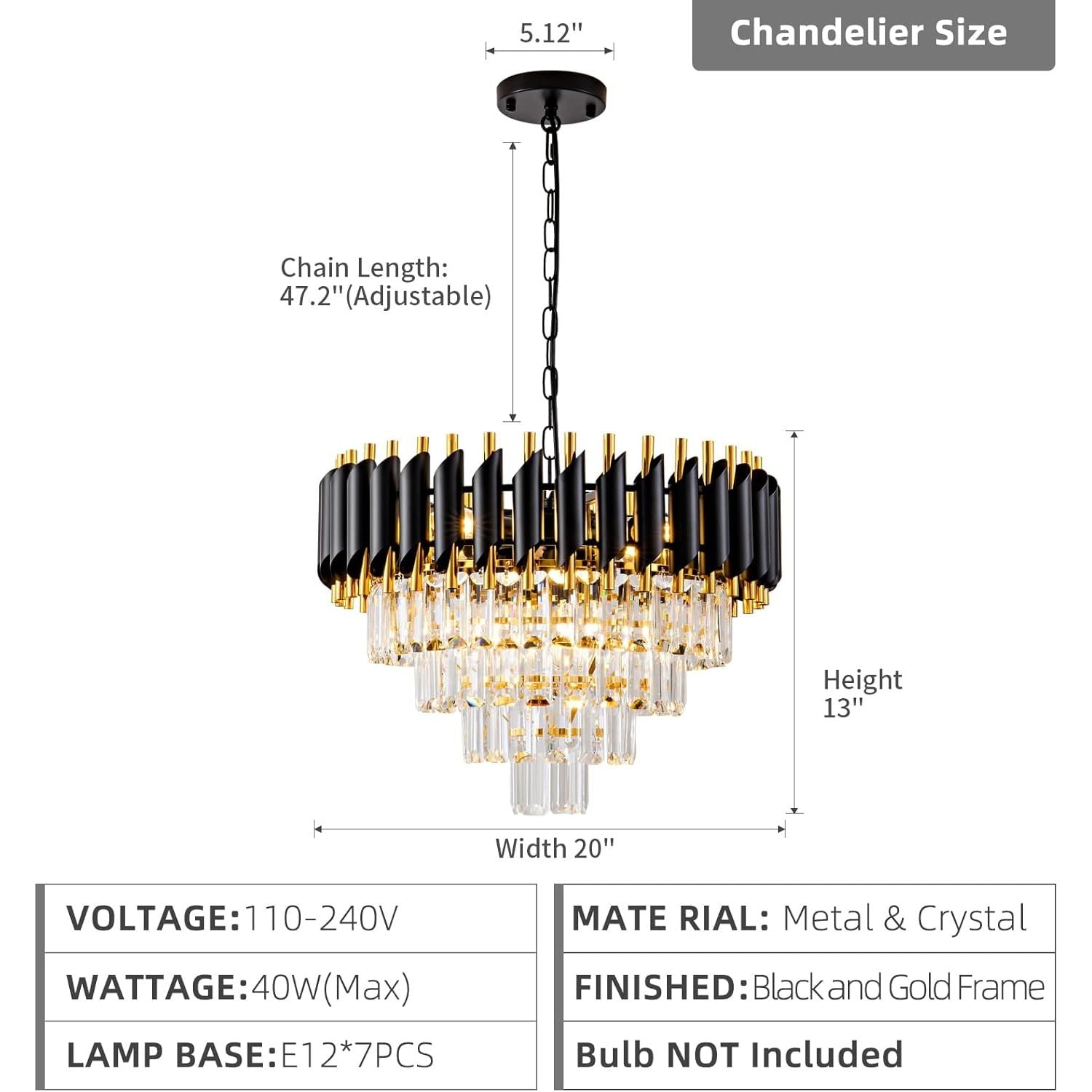 Modern Chandelier Gold and Black Crystal Chandeliers 4 - Tier Crystal Round Hanging Crystal Pendant 7 Lights Fixture for Dining Room Bedroom Living Room Farmhouse, Clear Crystals - Just Closeouts Canada Inc.
