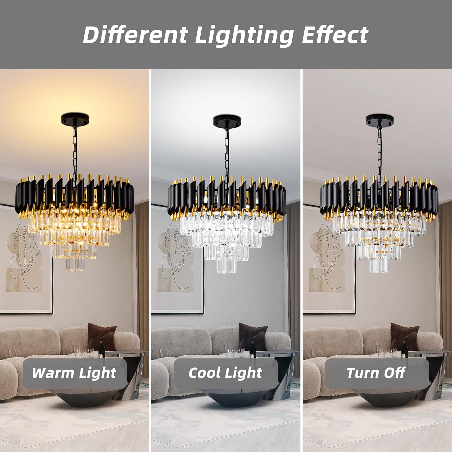 • 【Modern Clear Crystal Chandelier】Built in clear crystals, superior metal iron with matte black and gold painted.4-Tiers sparkling crystal chandelier lighting with contemporary design, perfect for home decor which will make your house look stunning.