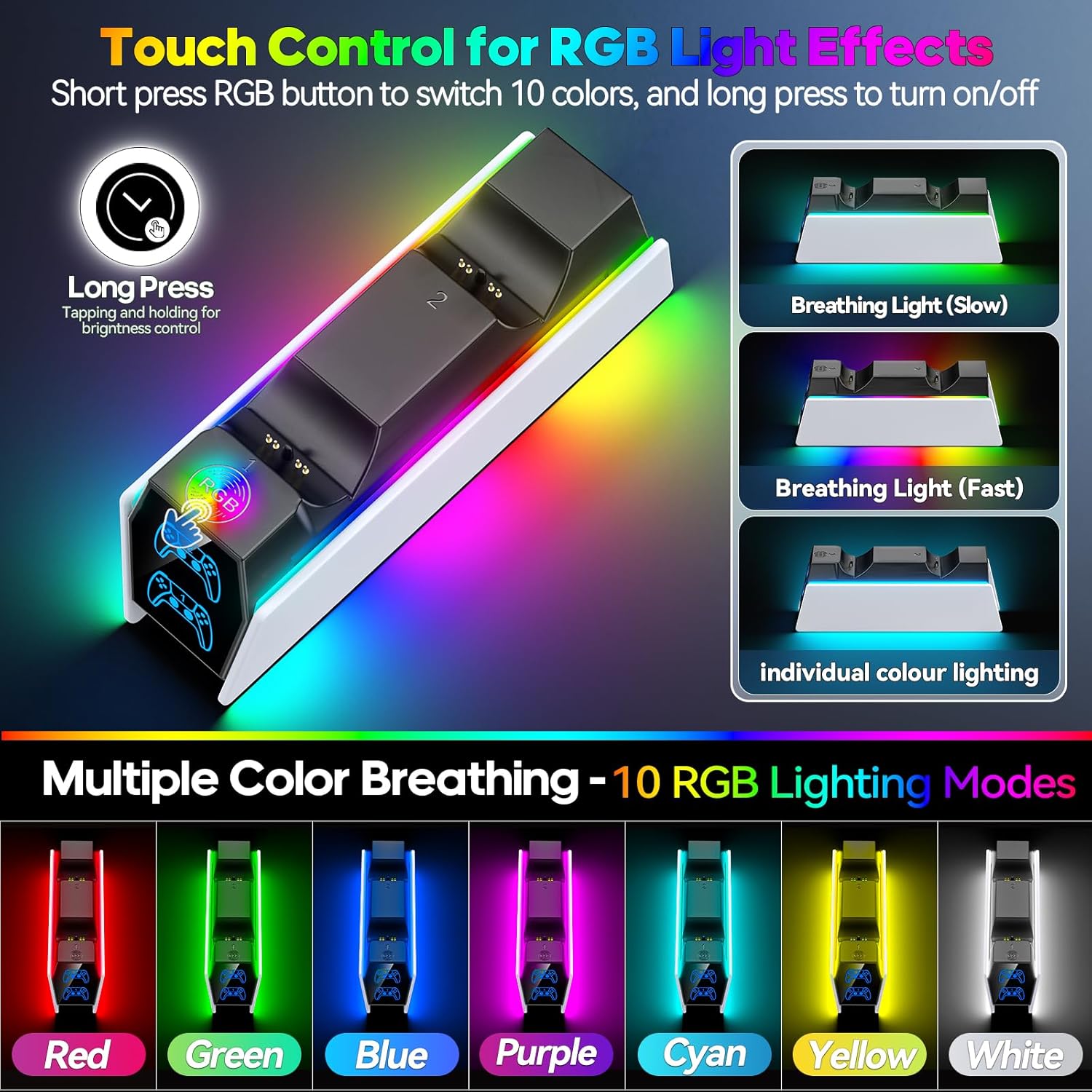 - 🎮【Compatible with Dualsense & Edge Controller】PS5 charger is specially designed to charge dual PS5 Edge or Dual Shock controllers simultaneously. Upgrade PS5 charging dock is compact which is say goodbye to messy cables, taking up less space. It's a must have PS5 accessories for PS5 controller.