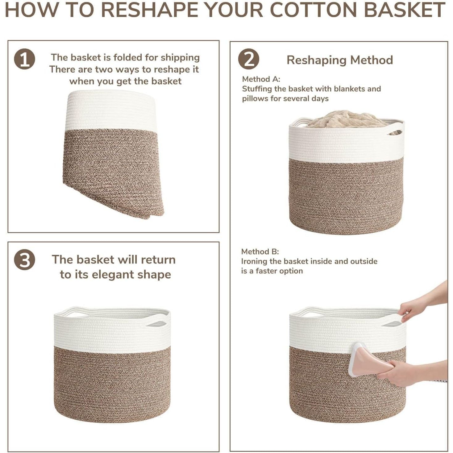 - Multipurpose: Our large cotton storage container can be used in living room, bedroom, bathroom, nursery room etc. It's can hold blankets, hanger plants, nursery toy, throw pillows, children shoes, art supplies, clothes, magazines, towel, diaper, yoga mats and more. Most important of all soft yet sturdy enough to stand up on their own