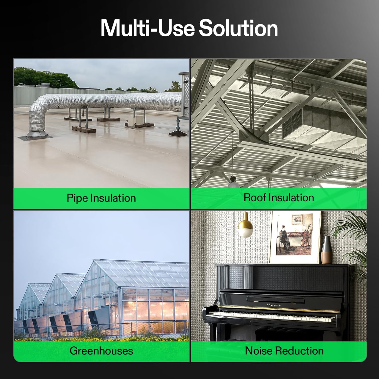 • Multiple Insulation Features: Double bubbles form the more airspace, the better it is at slowing heat transfer; 99.9% pure aluminum bonded to tear-resistant polymeric core; which makes an excellent thermal barrier for water, noise