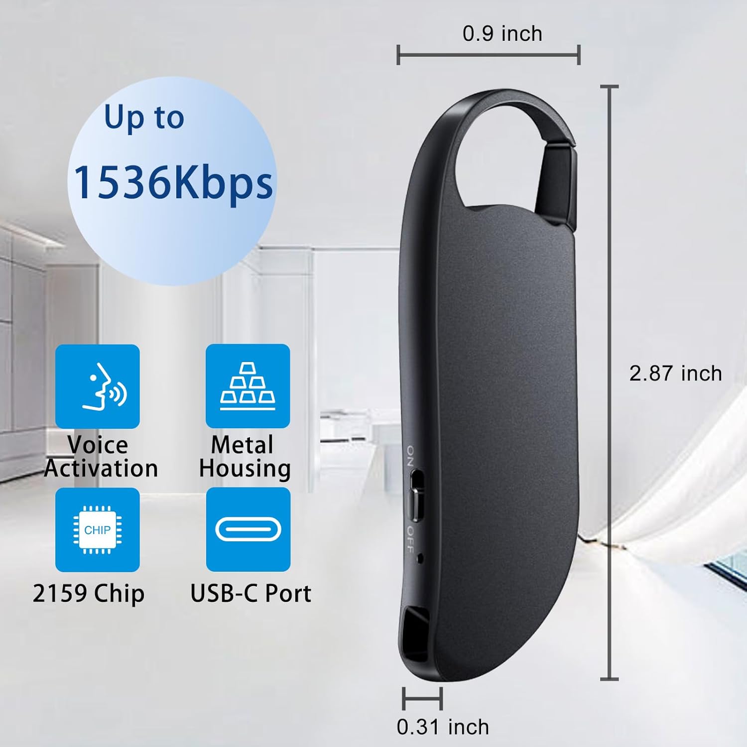 - One-Touch Recording: Switch to ON/OFF with a slide, and the digital recorder starts or saves recordings at bitrates from 1536–32kbps. Stay focused on what matters, knowing your recordings will continue without interruption from other apps