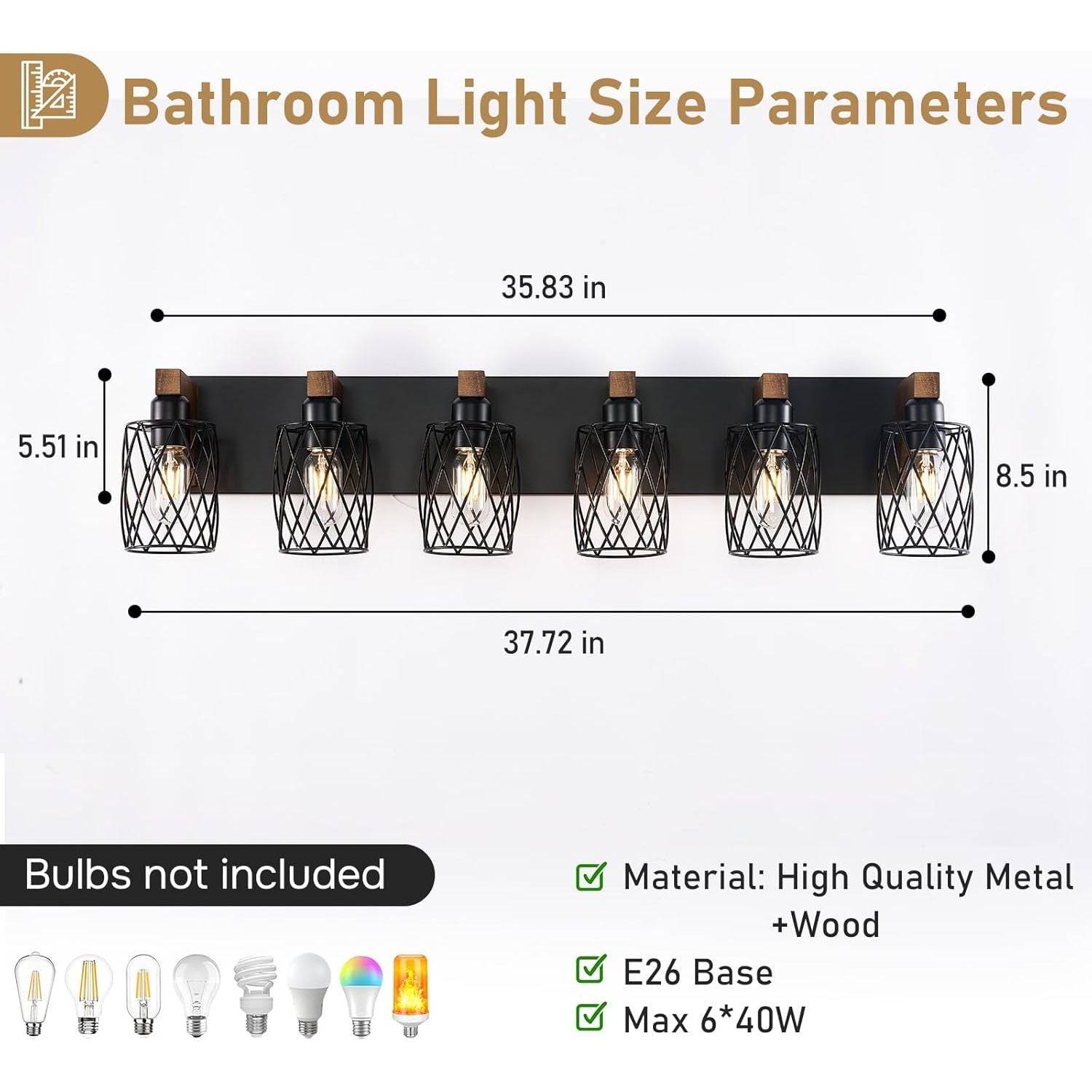 - 【Farmhouse Vanity Light】Rustic wood and black metal bring more farmhouse style to your life, the light passes through the matte black industrial cage and has an antique farmhouse look. The reflected light and shadow effect add more fun to your bathroom.