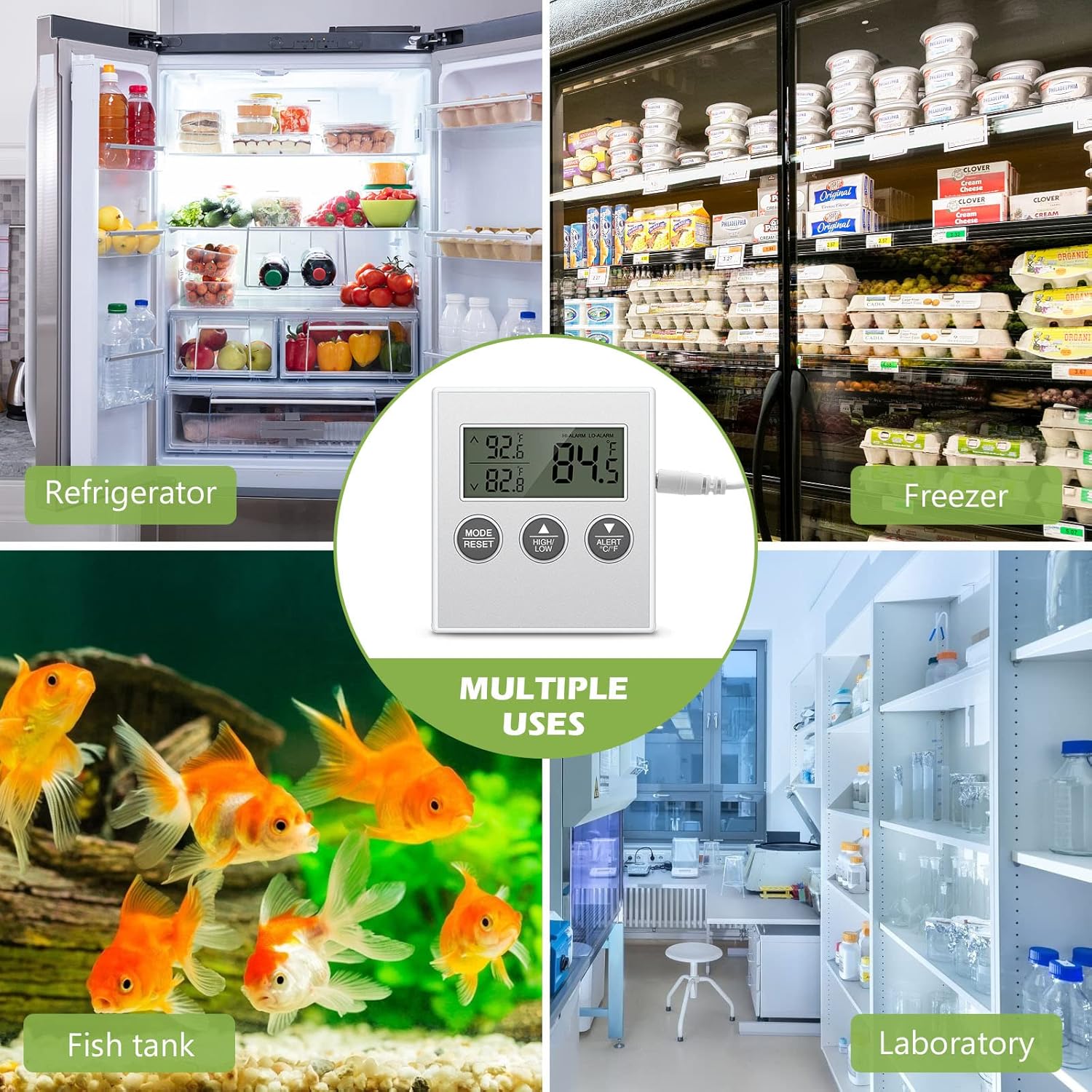• WIDE APPLICABILITY: The fridge freezer thermometer suitable for different water types such as fresh water, tap water, salty water, marine water and monitors the living temperature for reptile such as lizard, turtle. Also, it can be used for refrigerators, freezers, cold storages, fish tanks, homes, laboratories and so on