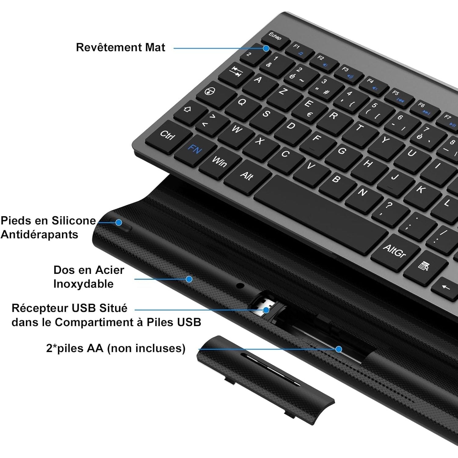 - Clavier AZERTY Français Layout: Clavier conçu spécifiquement pour le Québec avec la disposition AZERTY standard canadienne-française. Accès intuitif aux accents (é, è, à, ç), aux symboles et aux caractères spécifiques pour une frappe précise et efficace en français