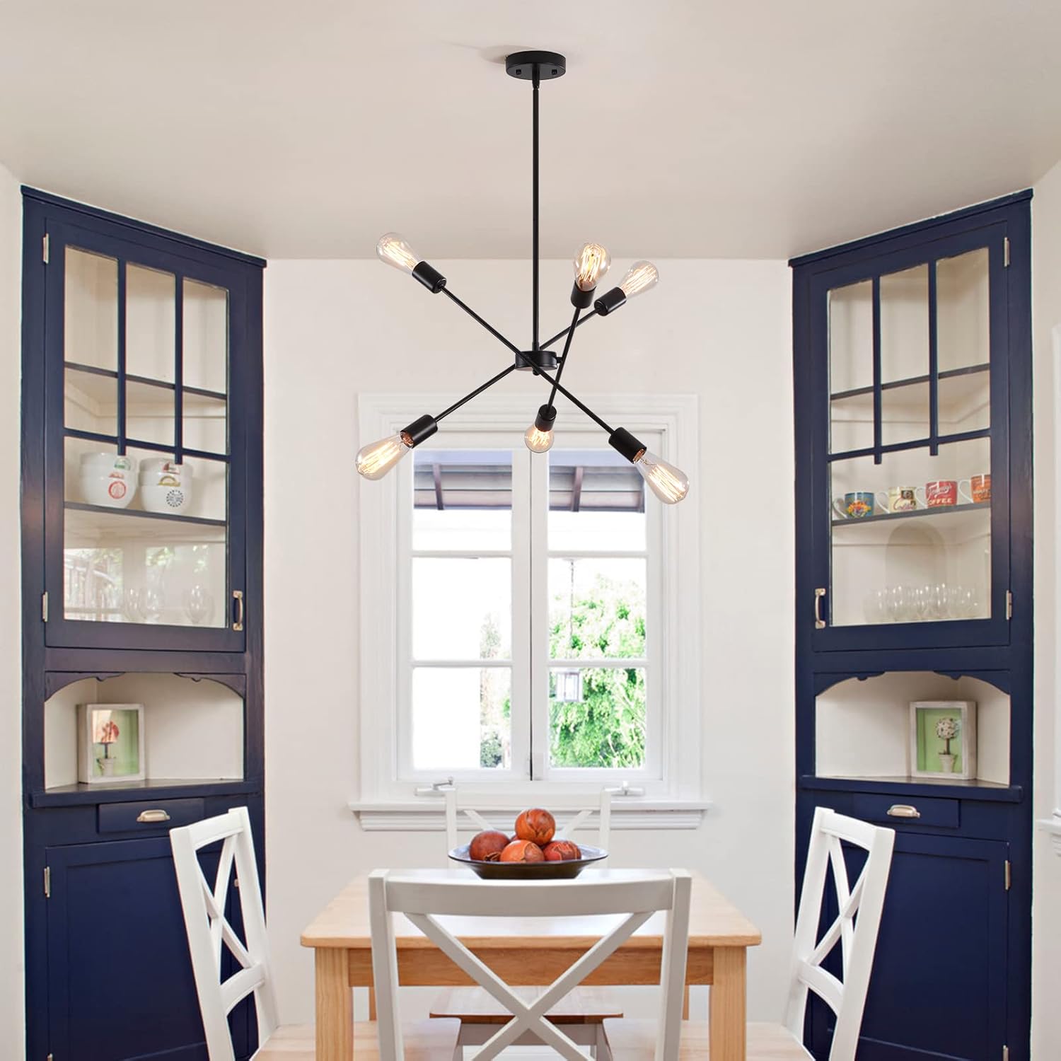 - 【Farmhouse Design】This chandelier features 6 candle-shaped light bases on each curved arm, creating a retro and elegant look. The rustic vintage design adds a charming touch to your space while providing warm and inviting lighting. Our dining room hanging light fixture is suitable for farmhouse, dining room, kitchen, barn, entryway, or foyer, adding a timeless farmhouse style to your home.
