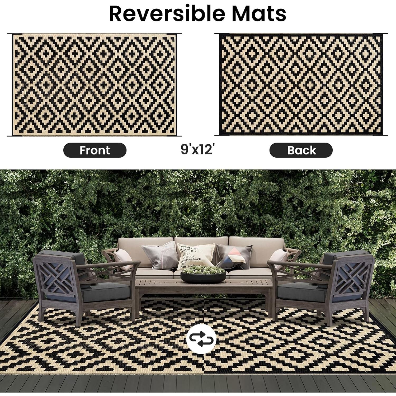 - Reversible & Versatile: Our outdoor Outdoor rug carpet features modern geometric patterns on both sides—simply flip it to switch up your style. Perfect for patios, gardens, beaches, picnics, RV camping, garages, balconies, backyards, and more. Suitable for both indoor and outdoor use, it’s a versatile addition to any space.