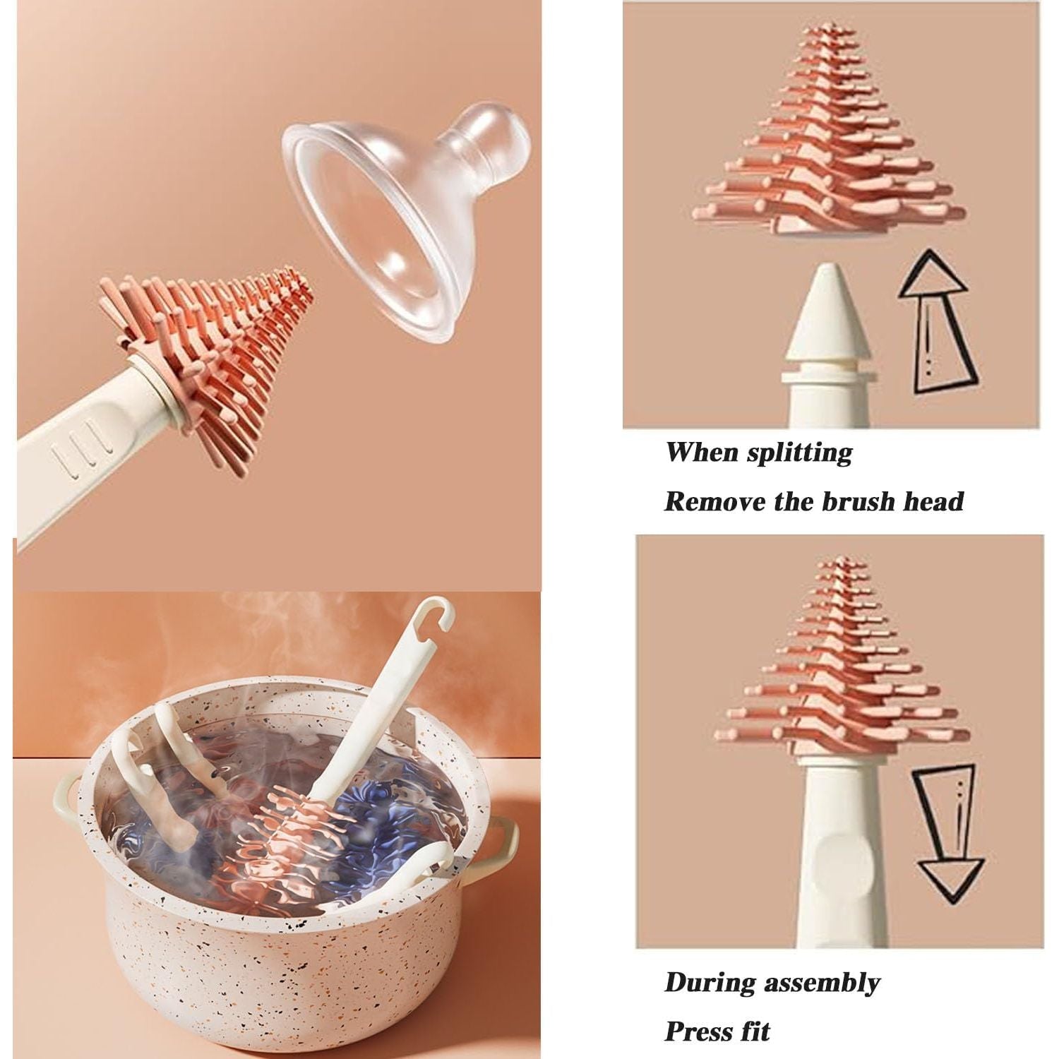 - 【Safe & Durable Material】: Made of high-quality PP and food-grade silicone material, safe, The soft brush head easily reaches all corners of the bottle to ensure a thorough cleaning without causing any damage to the bottle or nipple. The whole set is dishwasher safe, silicone brush head is detachable and can be boiled, but the handle is not boilable.
