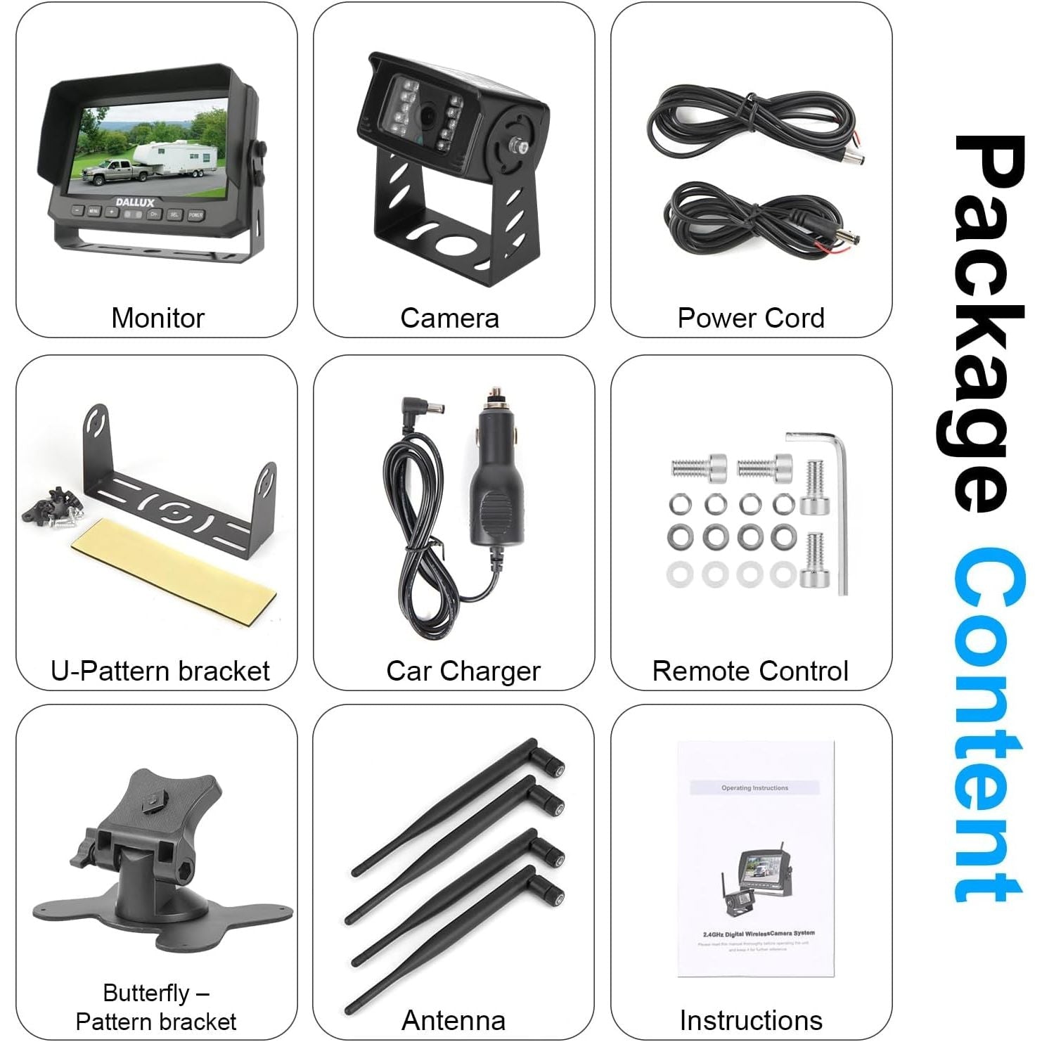 • 【Built-in DVR & Wide Voltage】This 7" IPS panel wireless monitor built-in recorder,support real time recording and video playback,maximum storage 128GB.It support 10V-32V wide voltage input for a Wide Variety of Large Vehicle Semi-Trailer/Box Trucks/Campers/5th Wheel/Tow Trailers/Bus/RVs.