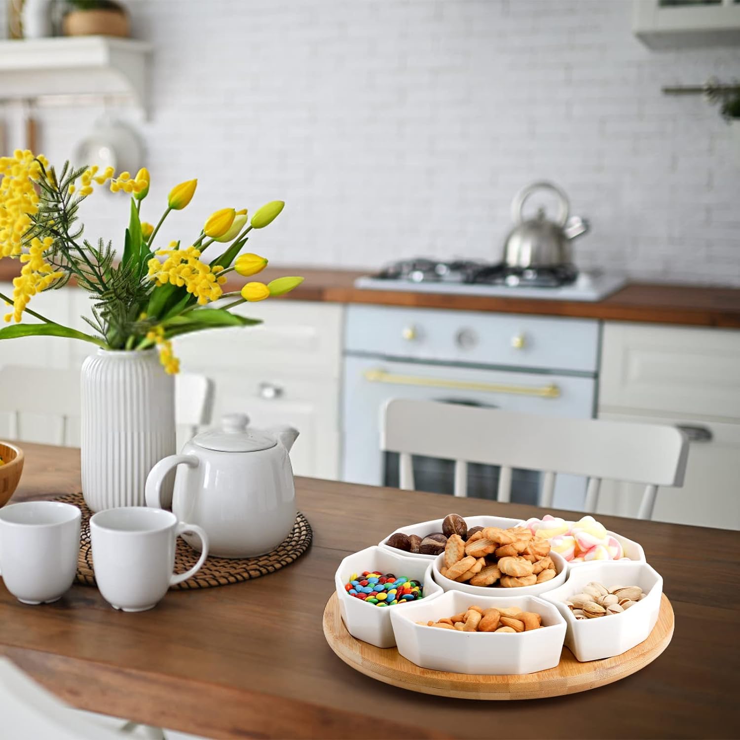 Lazy Susan Serving Tray, Porcelain 360° Rotatable Serving Tray and Platters, 11'' Removable Divided Serving Dishes, Party Relish Bowl for Chip, Dip, Veggies, Candy and Snack, Cheese, 7 Pieces - Just Closeouts Canada Inc.X003AM86CP