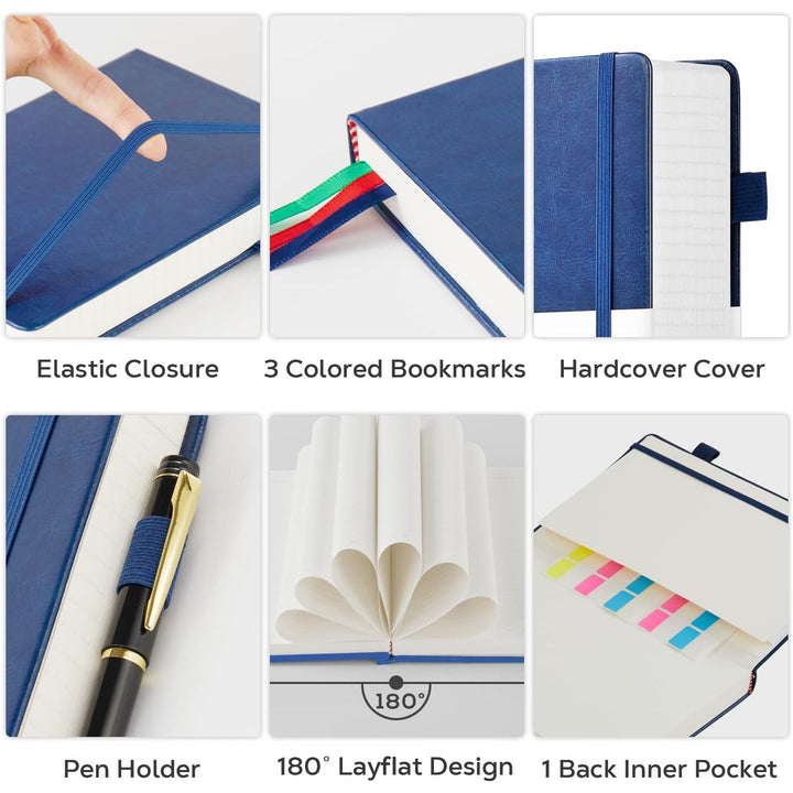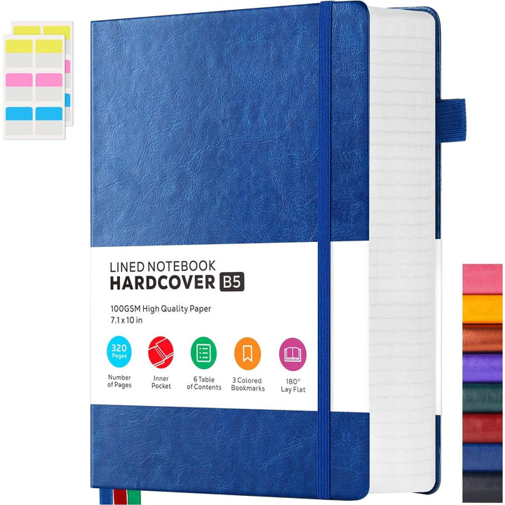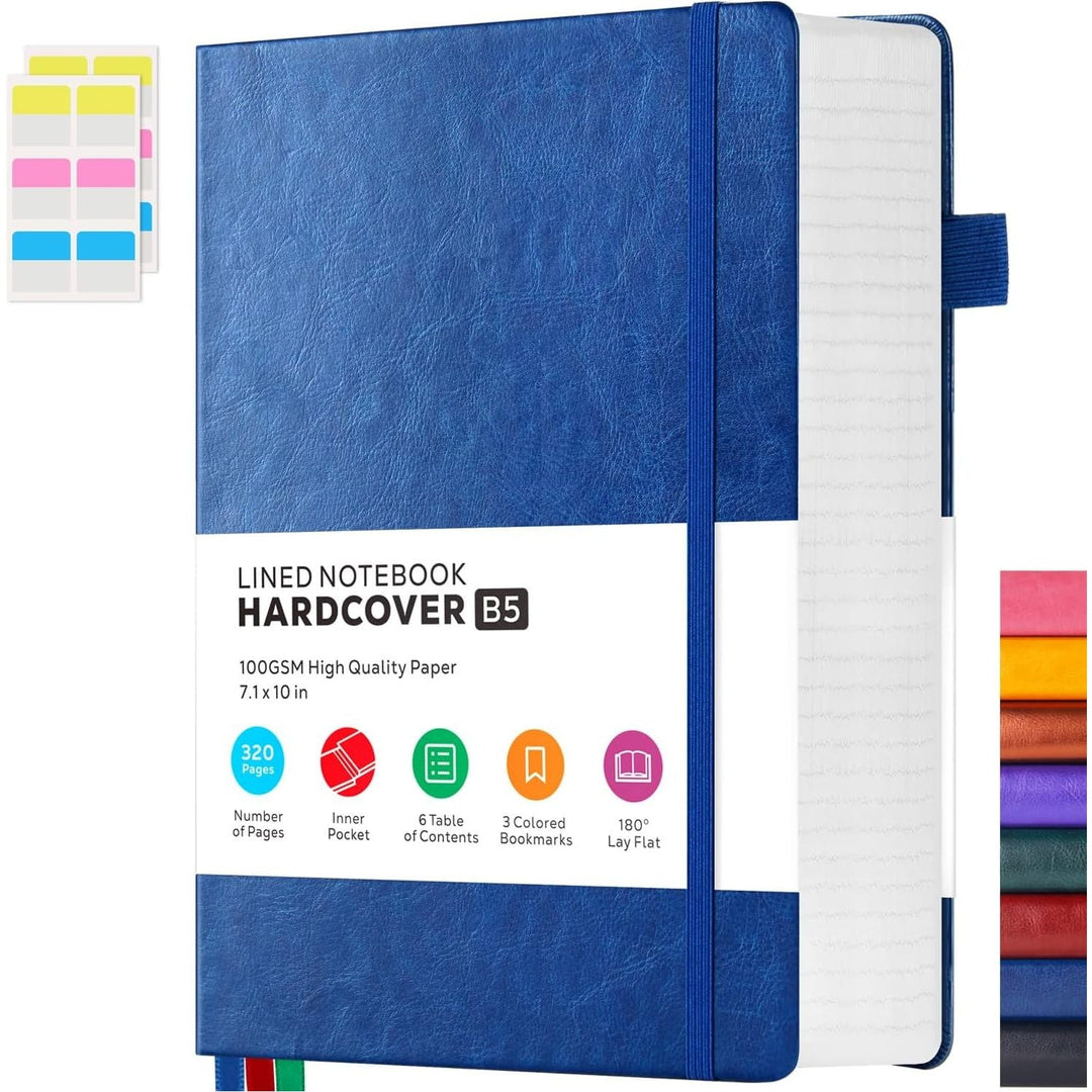 Leather Lined Notebook Journal, 320 Pages Hardcover Notebook Journals for Writing Women & Men, B5 (7.1'' X 10'') College Ruled Notebook with 100GSM Thick Paper for School Work Organization, Dark Blue - Just Closeouts Canada Inc.