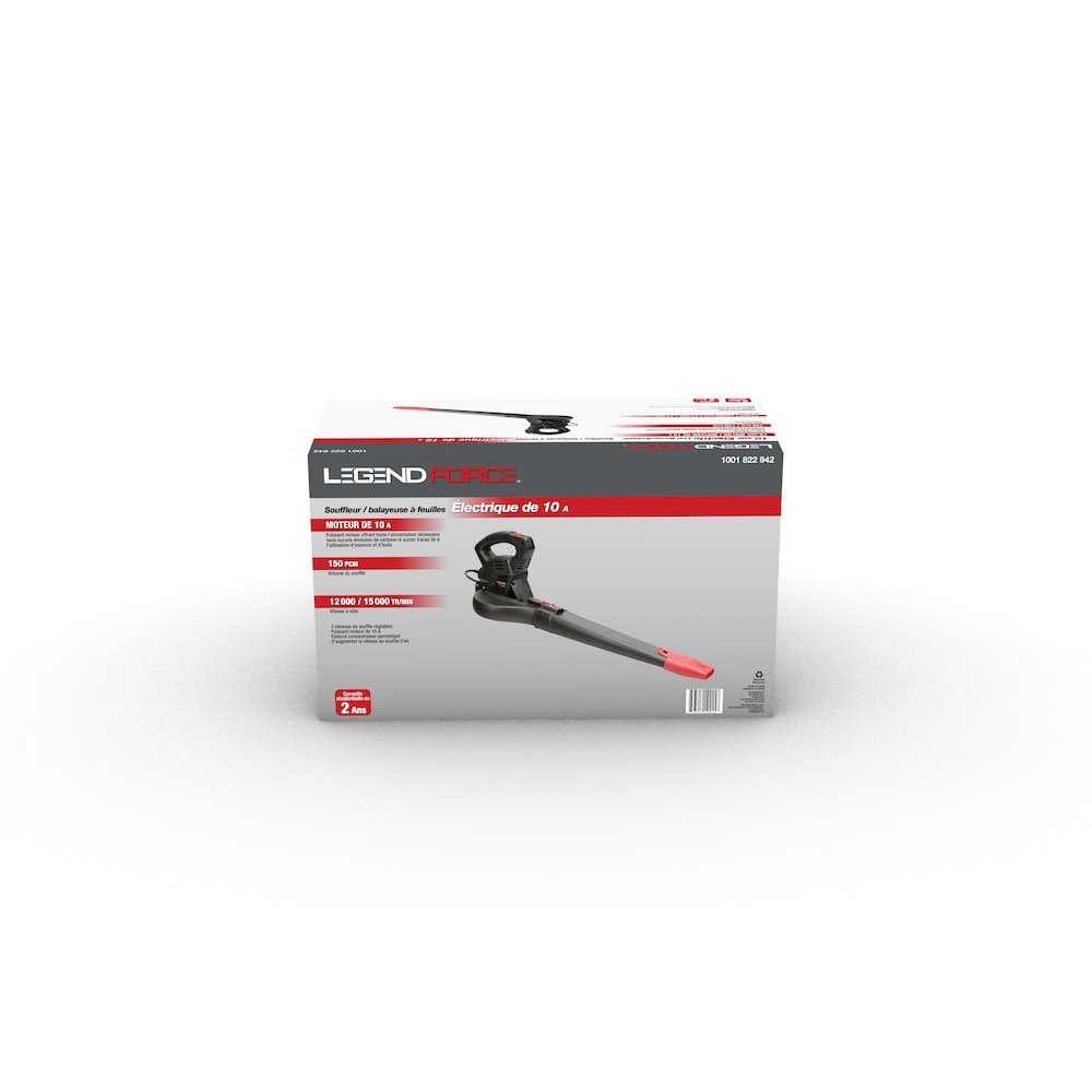 10-amp motor packs a powerful 150 CFM air volume. It's just the right size for light-duty household applications like sweeping porches, patios, walkways, decks and garages - and even light snow! Two speed settings tailor the wind to suit the task with the flick of a switch.