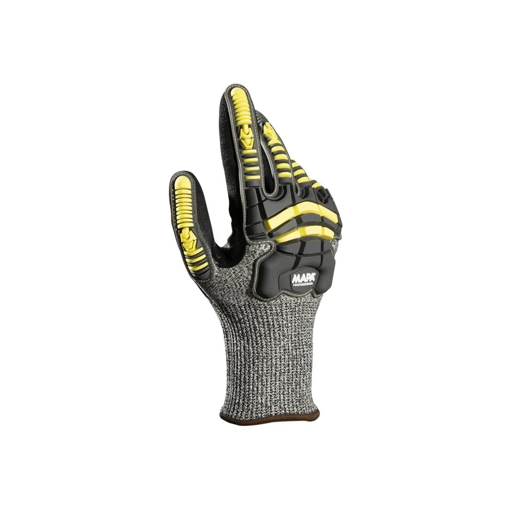 Impact and cut (D) resistant glove offering superior dexterity and grip in oily environment (Made with grip&proof technology). Reinforced with foam pads in the palm and nitrile crotch