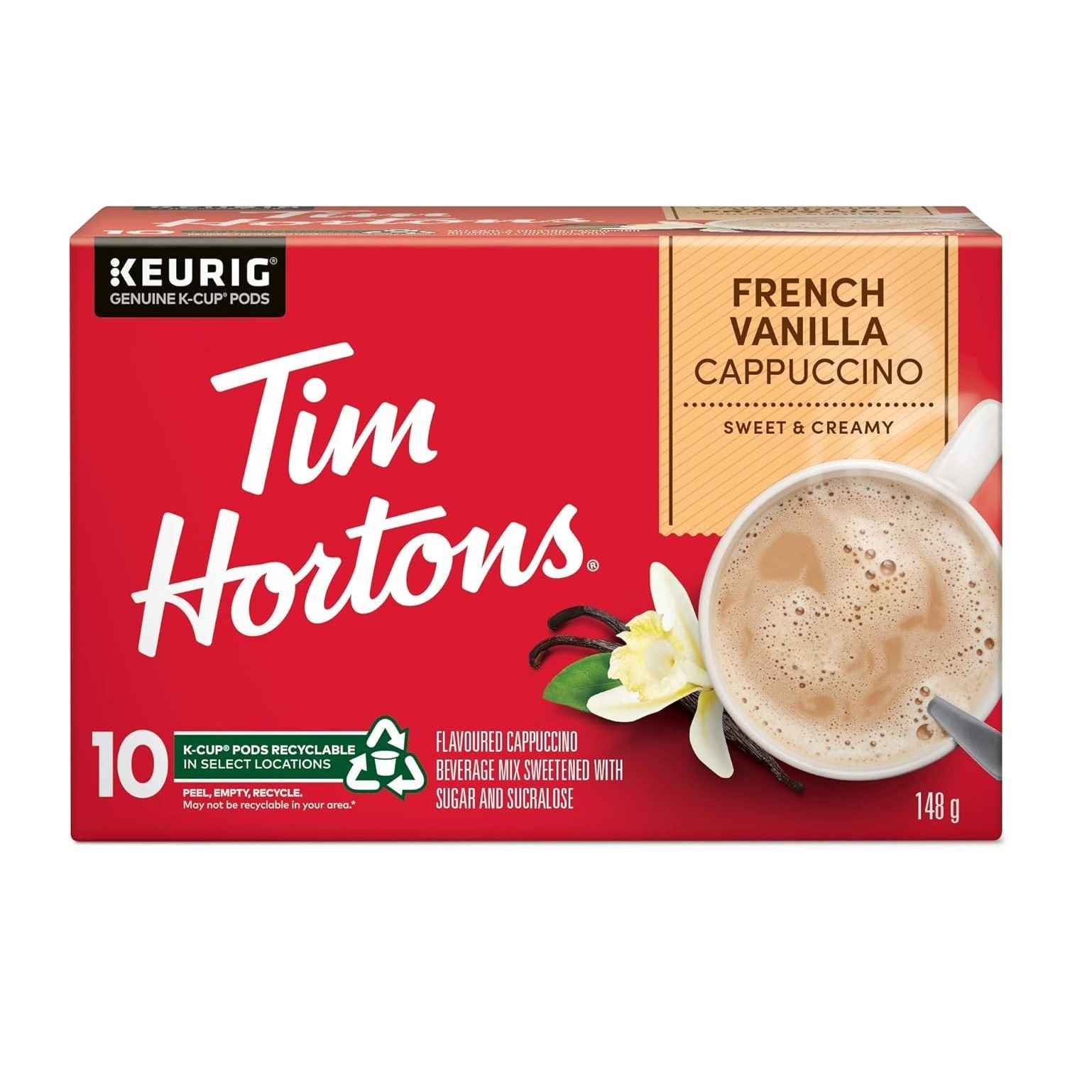 Tim Hortons French Vanilla Cappuccino, Single Serve Keurig K - Cup Pods, 10 Count - Just Closeouts Canada Inc.063209112721