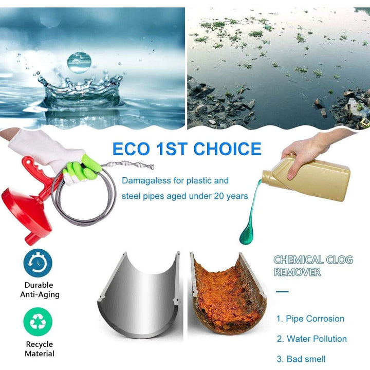 • [Easy Operation and Storage] The flexible spring can be bent more than 90 degrees without breaking or kinking, which enables you to remove the sink clogs efficiently. After use, the springs can be stored in the drum to keep it tidy than conventional drain cleaner.