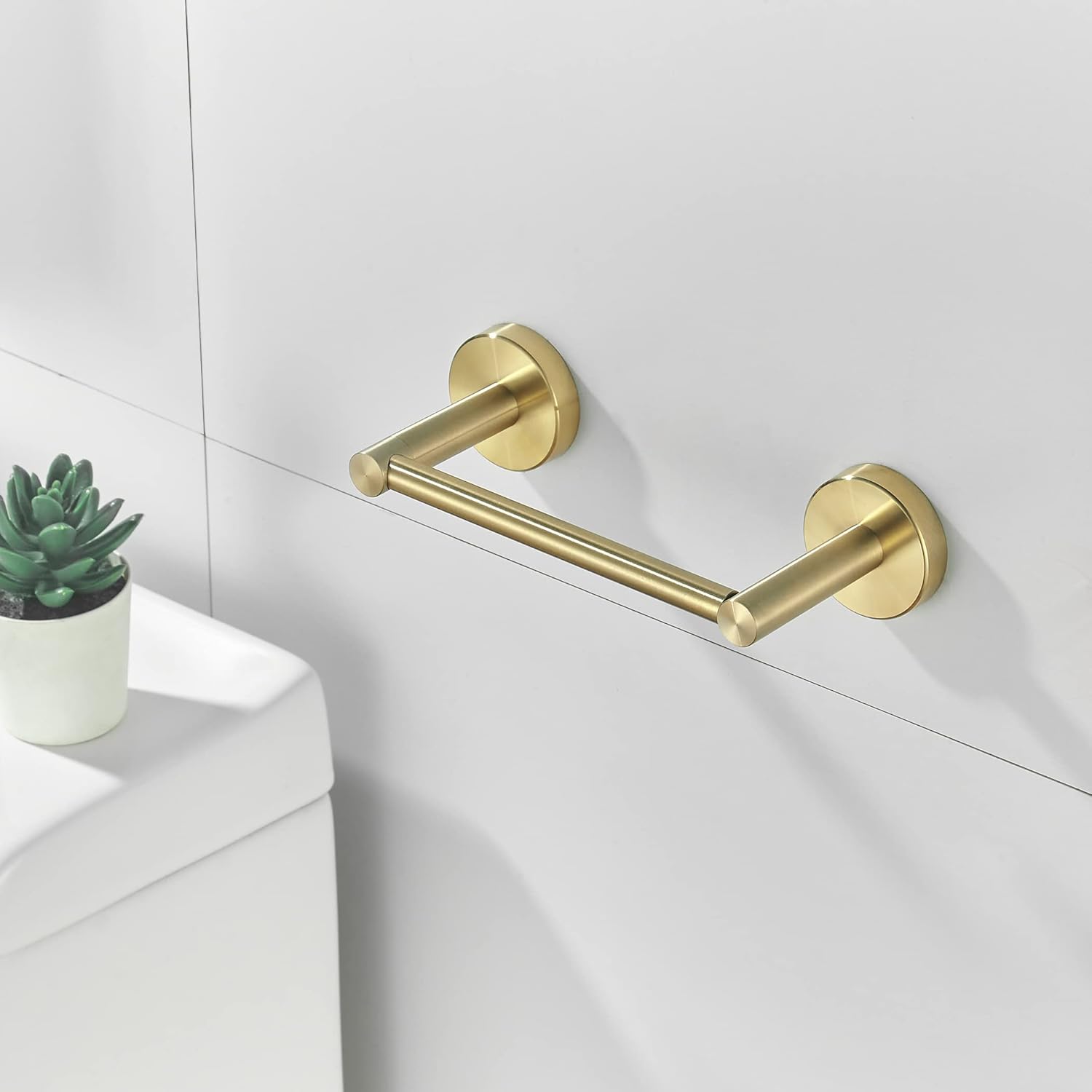 - [Multiple Options]: You can install the brushed gold toilet paper holder horizontally or vertically, and you can install it in your own way. It can also be used as a towel holder to hang towels to provide you with another choice.